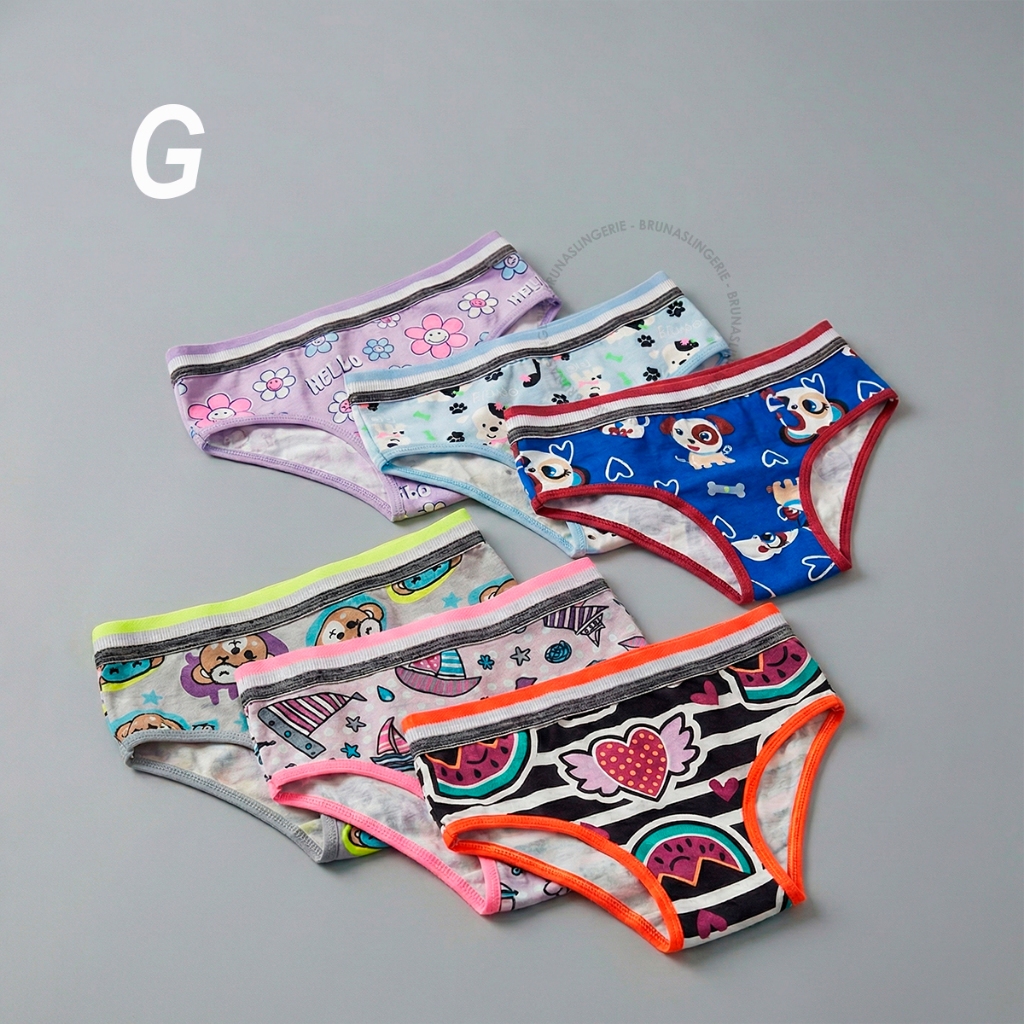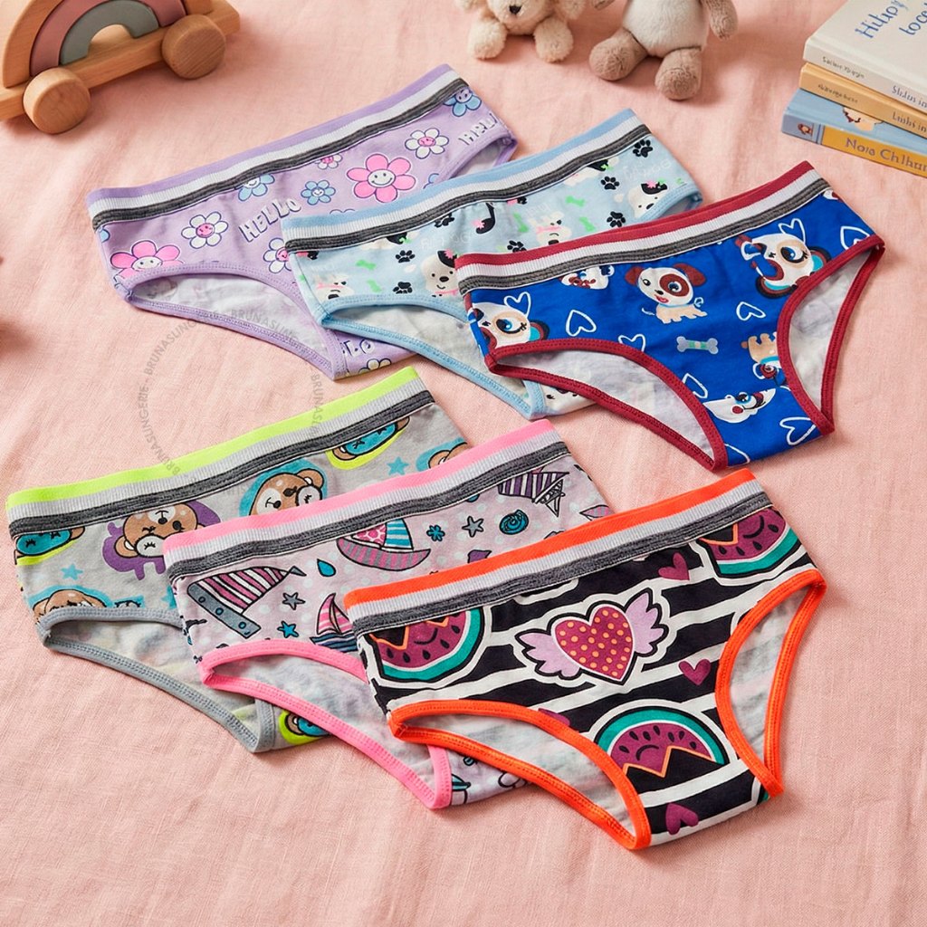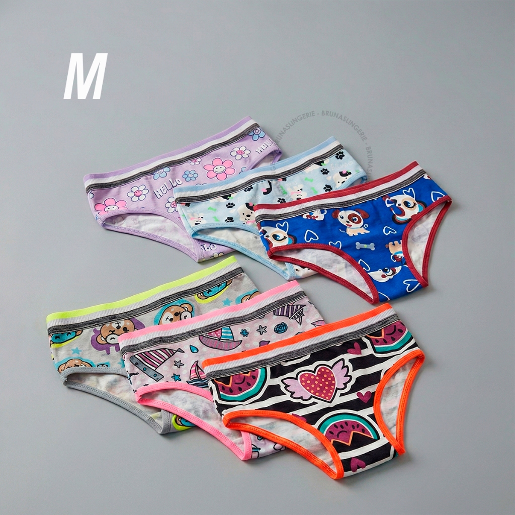 Kit 6 Calcinha Infantil Cós 100% Algodão 4 A 12 Anos Roupas Íntima Menina Estampas Sortidas