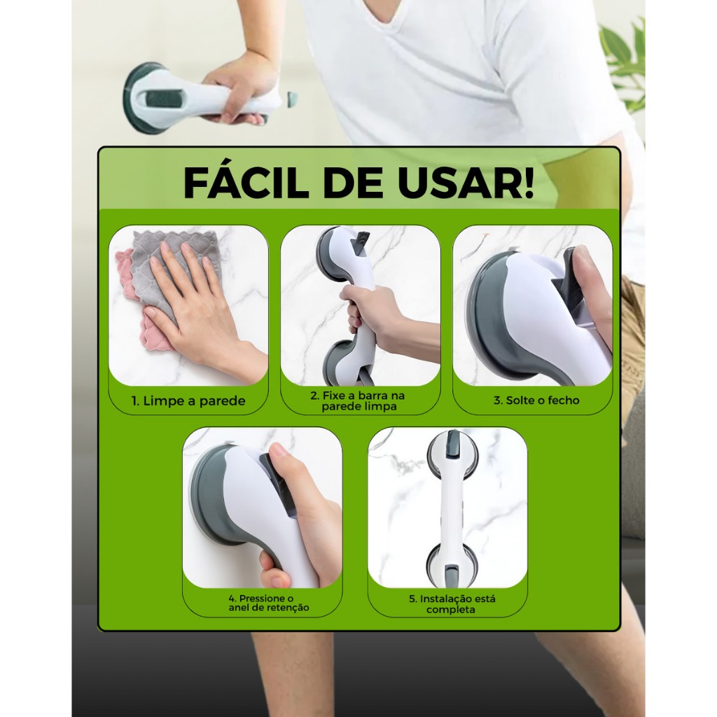 Suporte de Segurança Barras Fixas Com Ventosa Para Idosos e Deficientes Apoio Portátil Banheiro