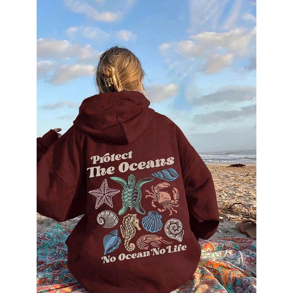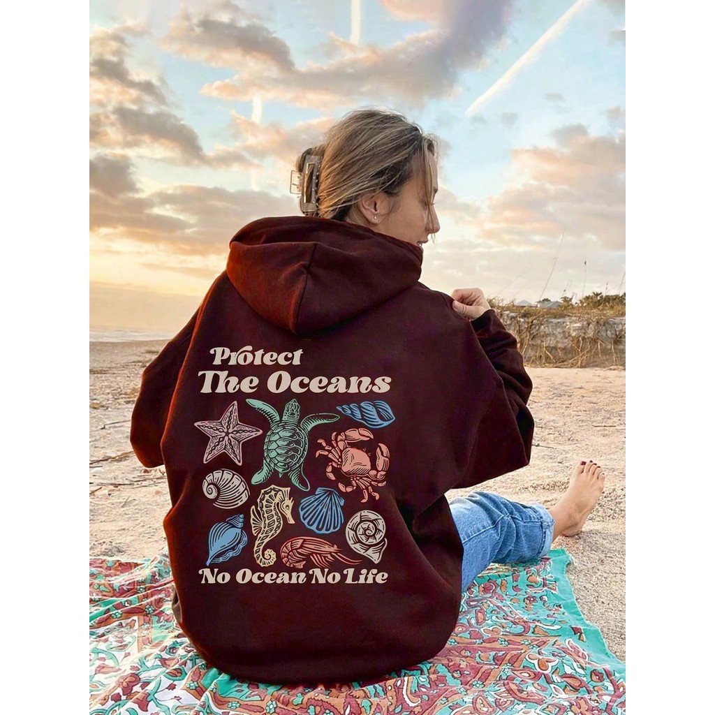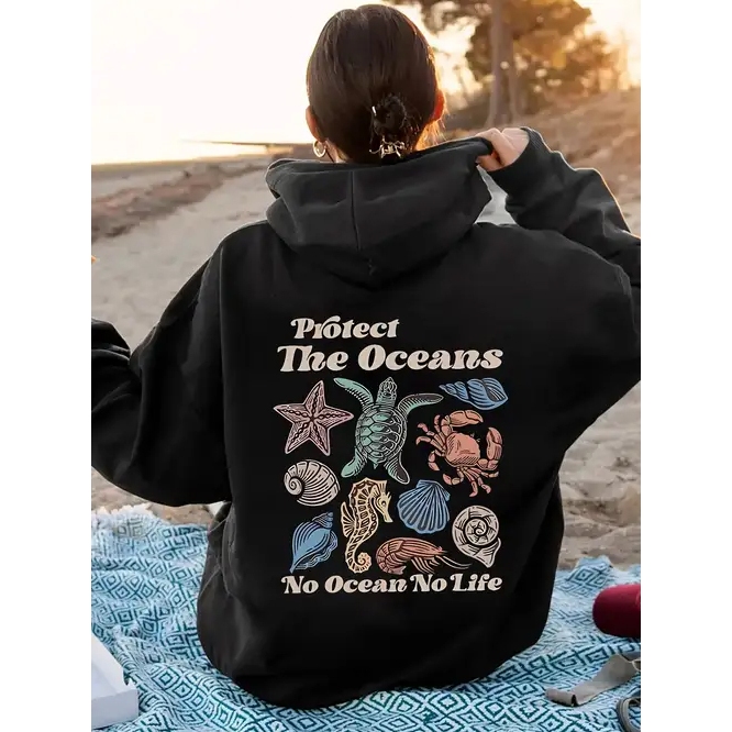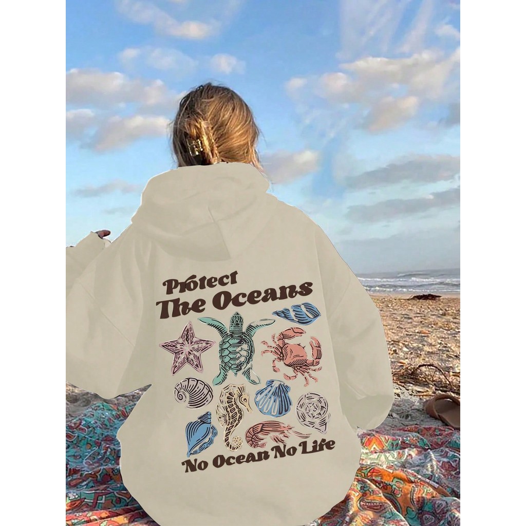 Moletom Gráfico Oceano Tartarugas Blusão de Frio Meio Ambiente Casual Feminino Moleton Lançamento