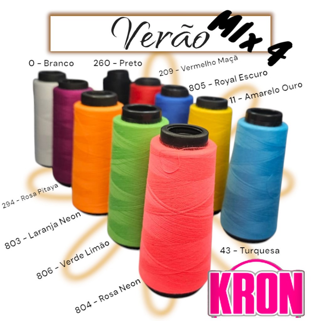 Kit Com 10 Linhas Costura Kron Reta Cone 1500Metros Cada Cores Sortidas Máquina Doméstica Industrial