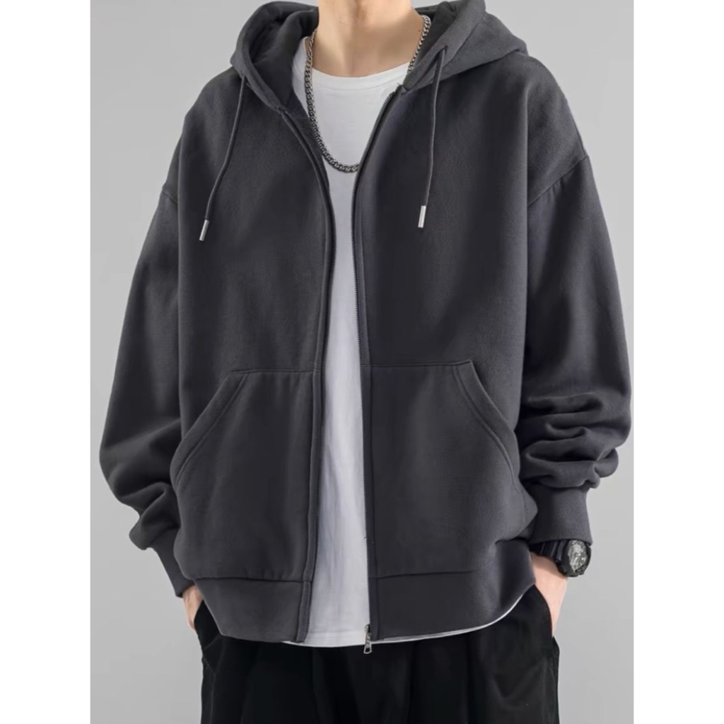 Moletom Blusa Aberto Com Ziper e Capuz de Frio INVERNO LISO CASACO