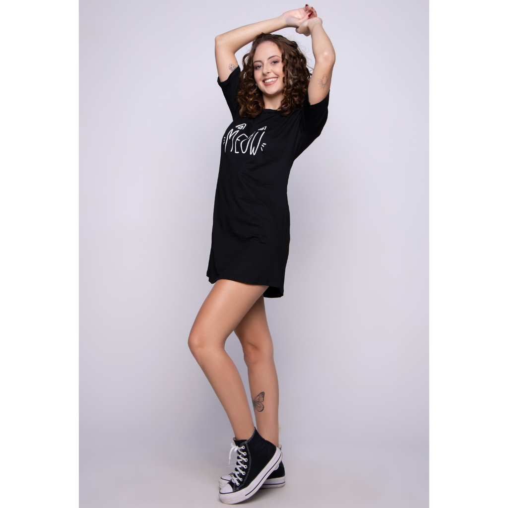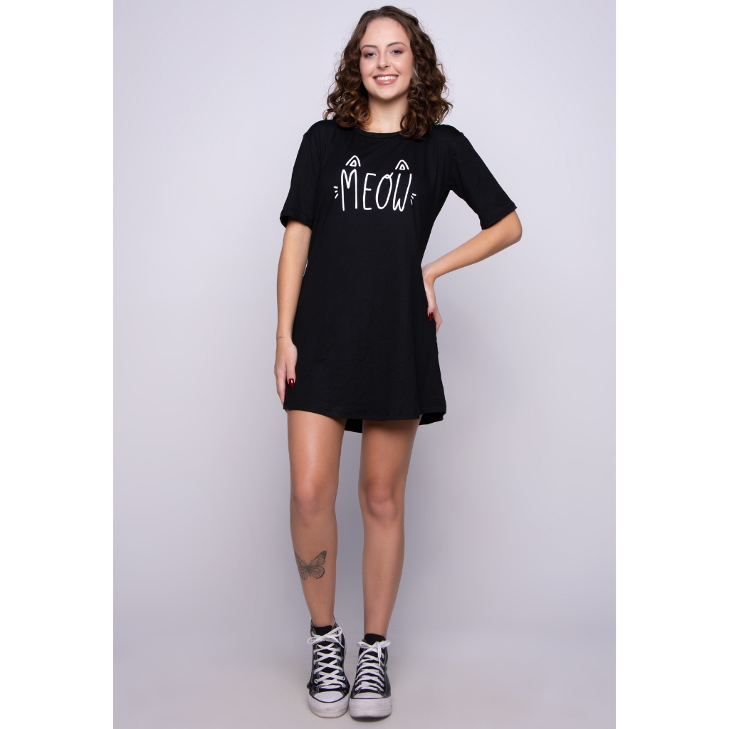 Camisão Vestido Moda Pijama Blusão Confortável Estampa "Meow" Lançamento Verão.