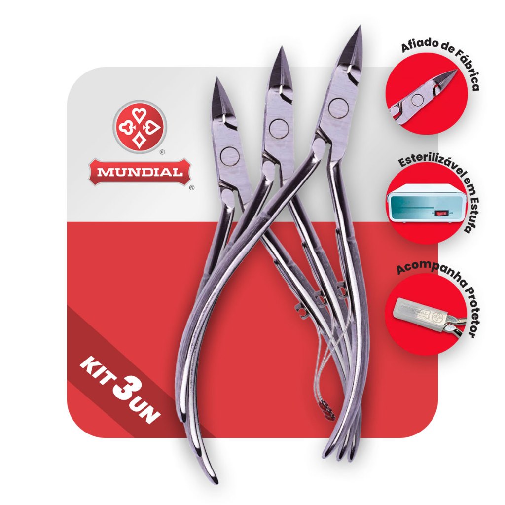 Kit Alicate De Cutícula Mundial 522C | 3 Unidades | Afiado de Fábrica