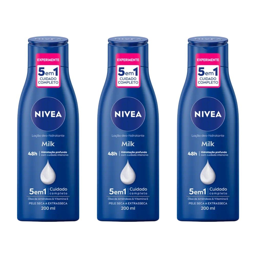 Kit Nivea Loção Hidratante Milk Pele Seca a Extrasseca 200ml (3 unidades)