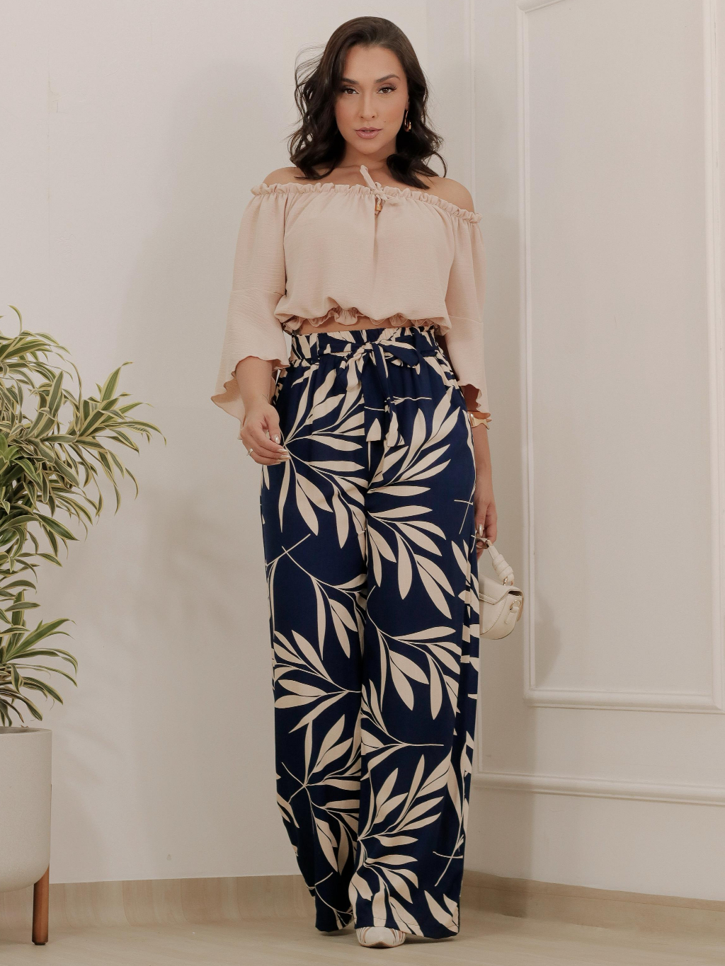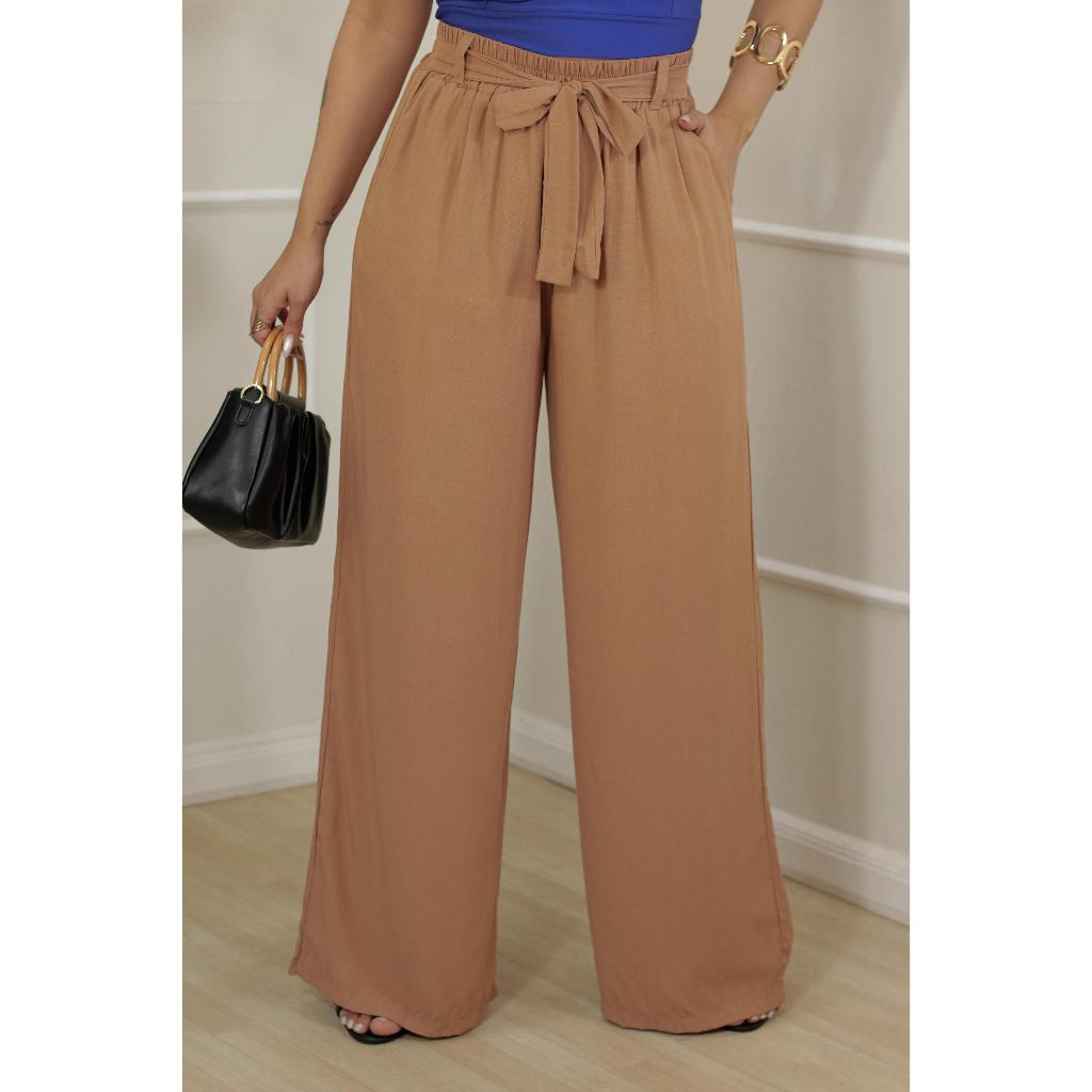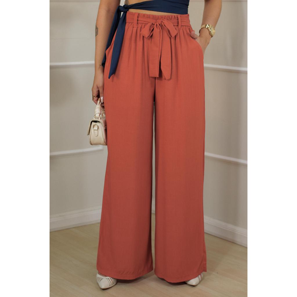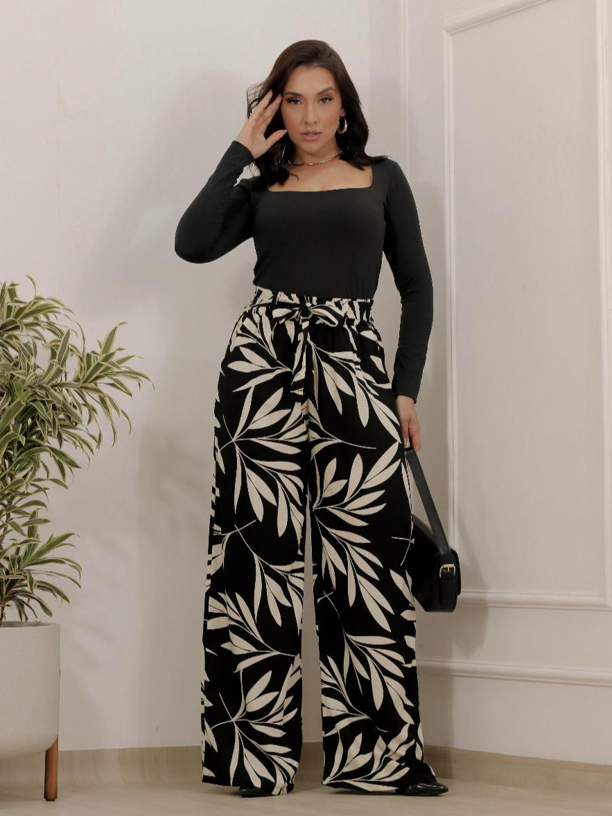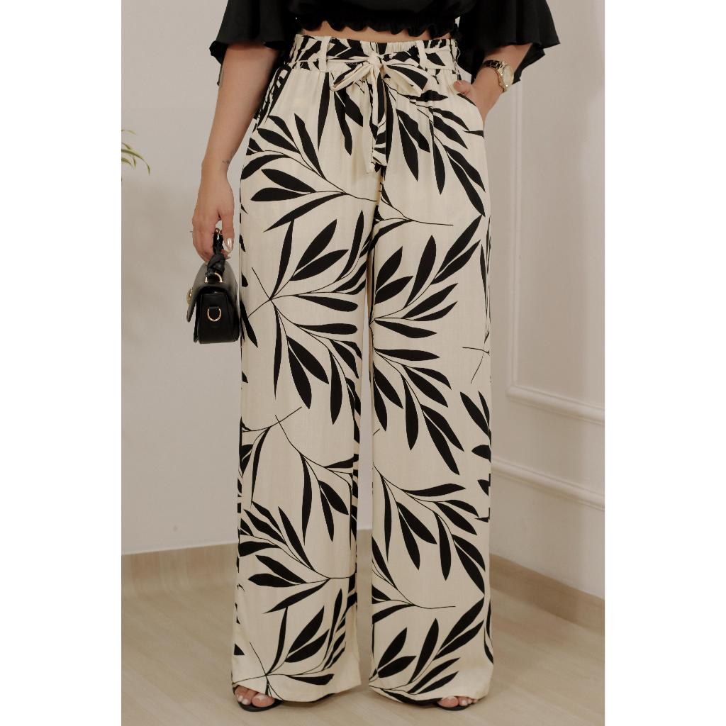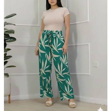 calça pantalona estampada feminino cintura alta (forro e bolso)