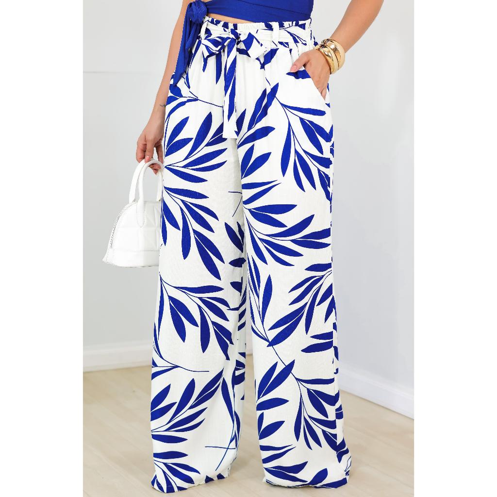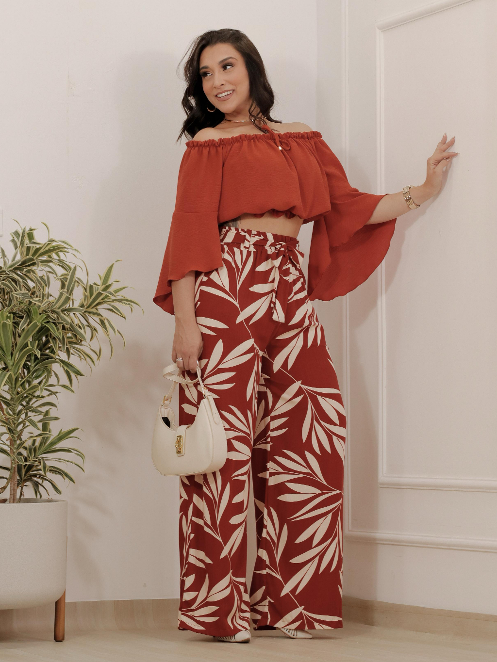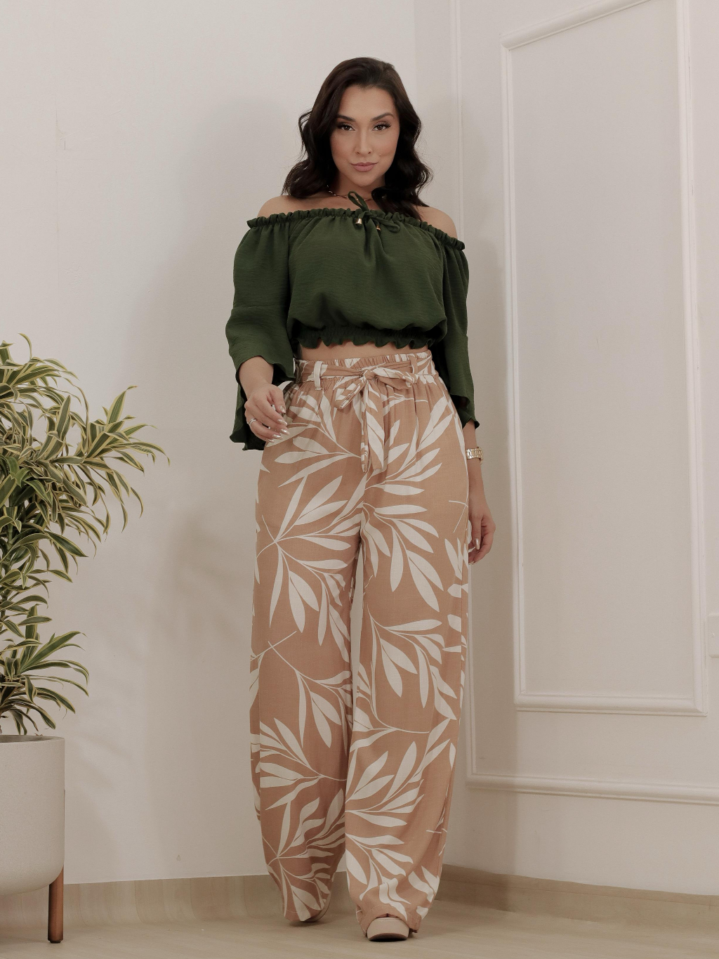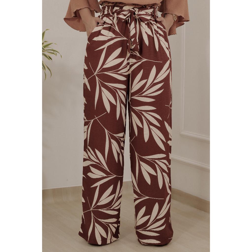 calça pantalona estampada feminino cintura alta (forro e bolso)
