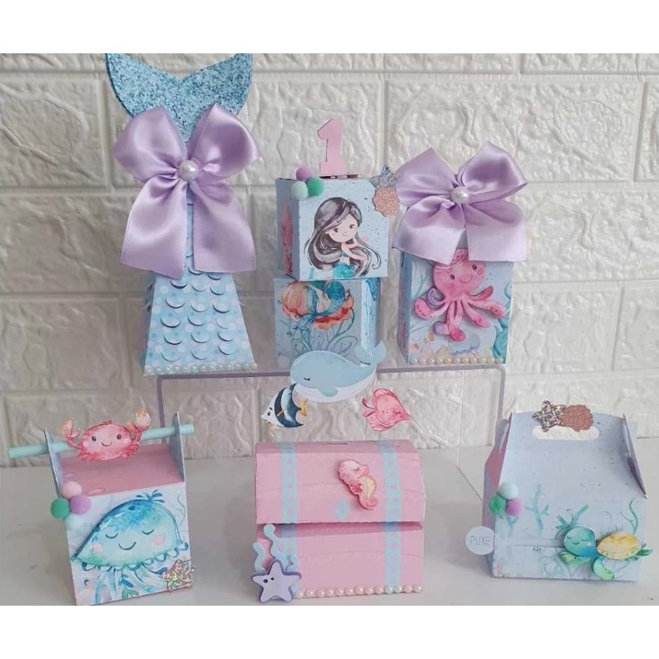 KIT FESTA CAIXINHAS PARA LEMBRANCINHAS PARA DECORAÇÃO DE ANIVERSARIO TEMA FUNDO DO MAR MENINA
