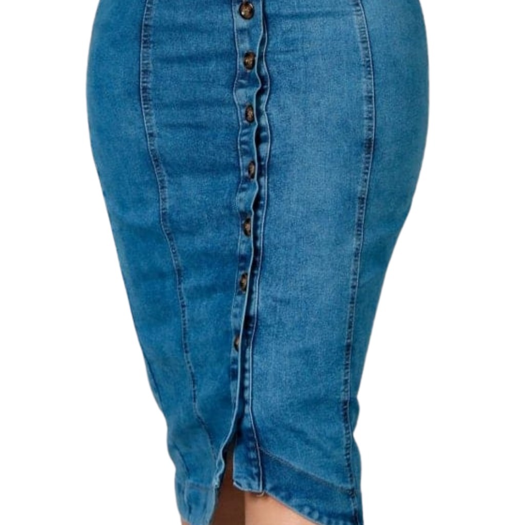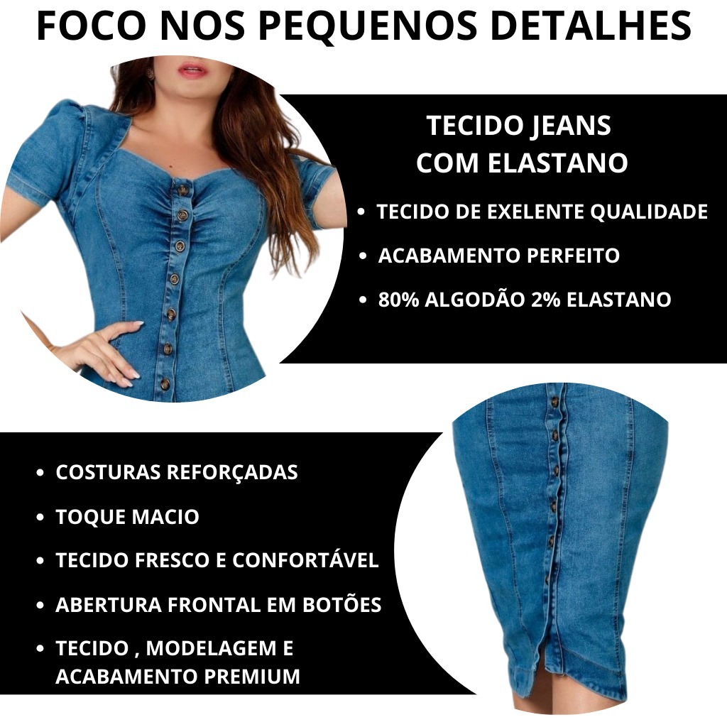 Vestido Jeans Feminino Midi Manga Princesa Vestido Com Botões Frontal