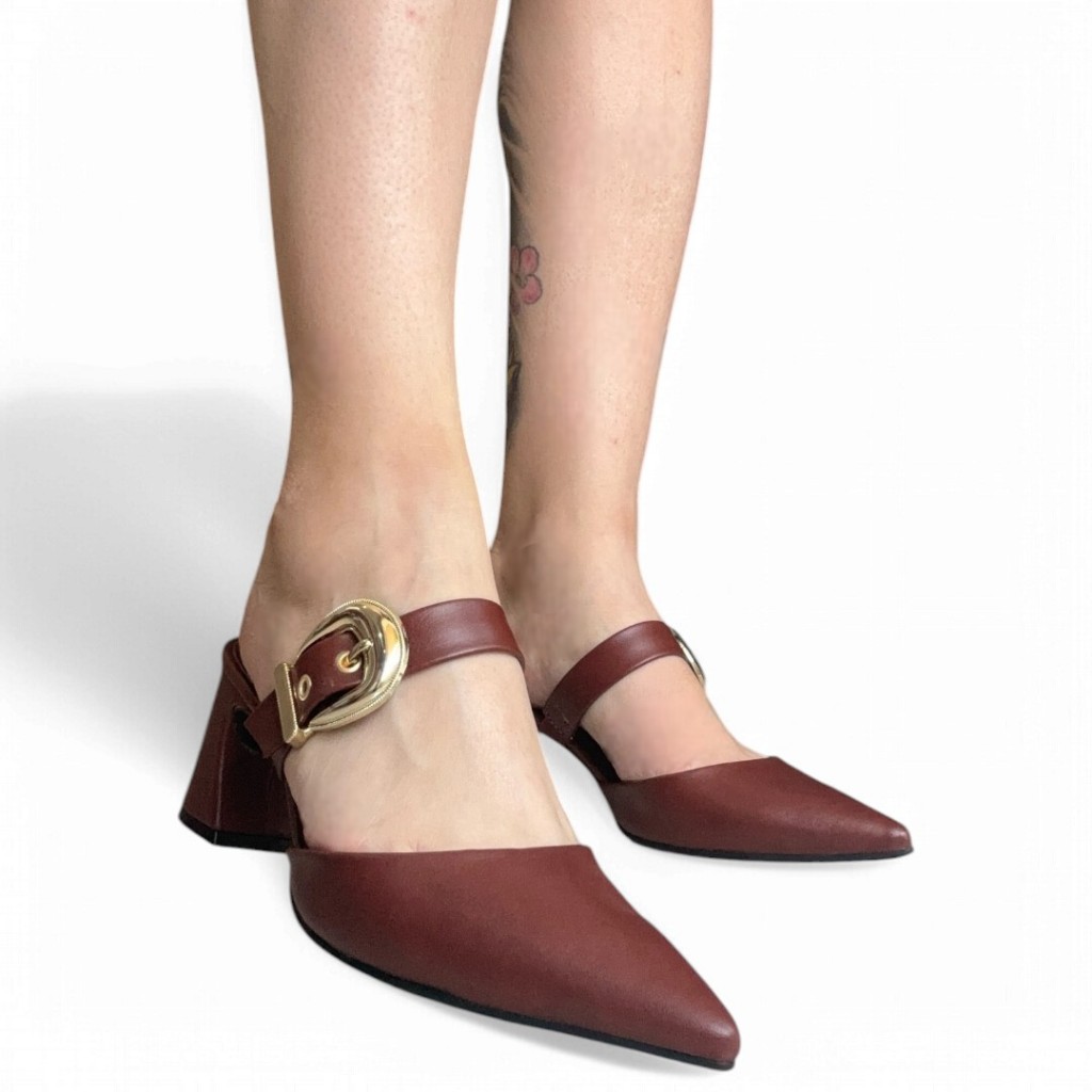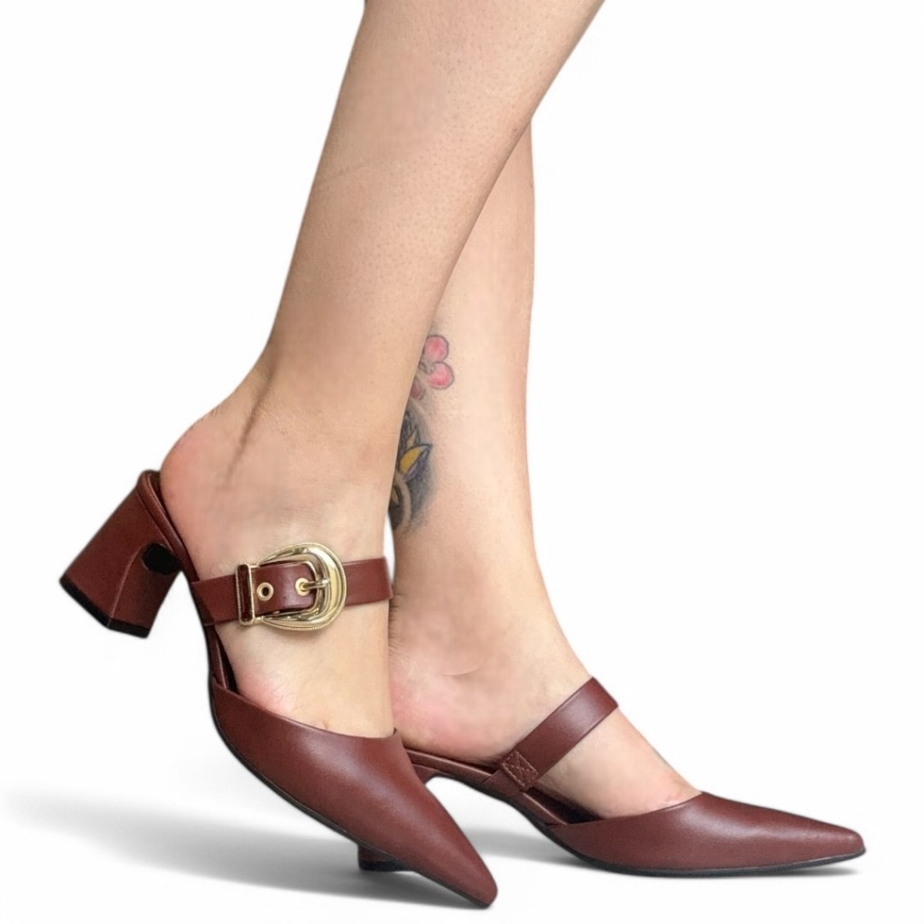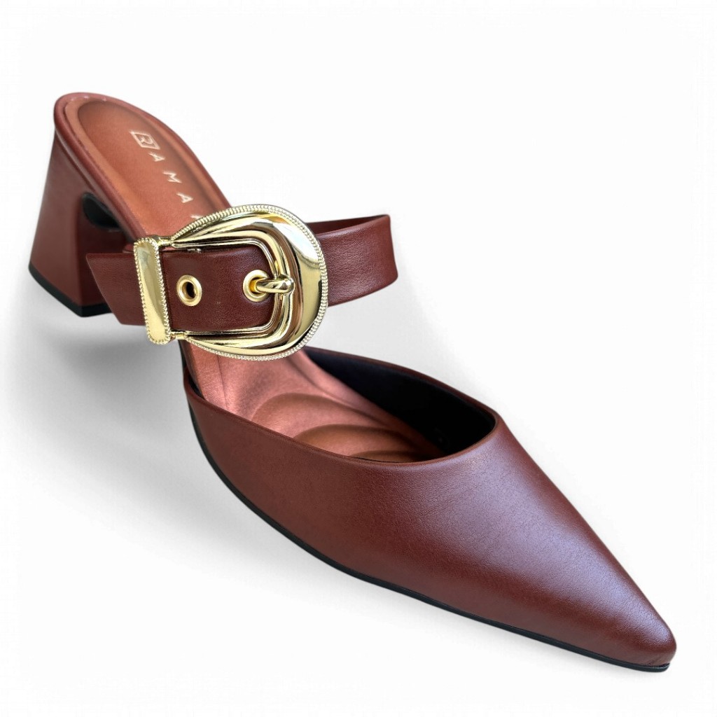 Sapato Mule Feminino Salto Médio Bloco Marrom Ramarim 2516132-1