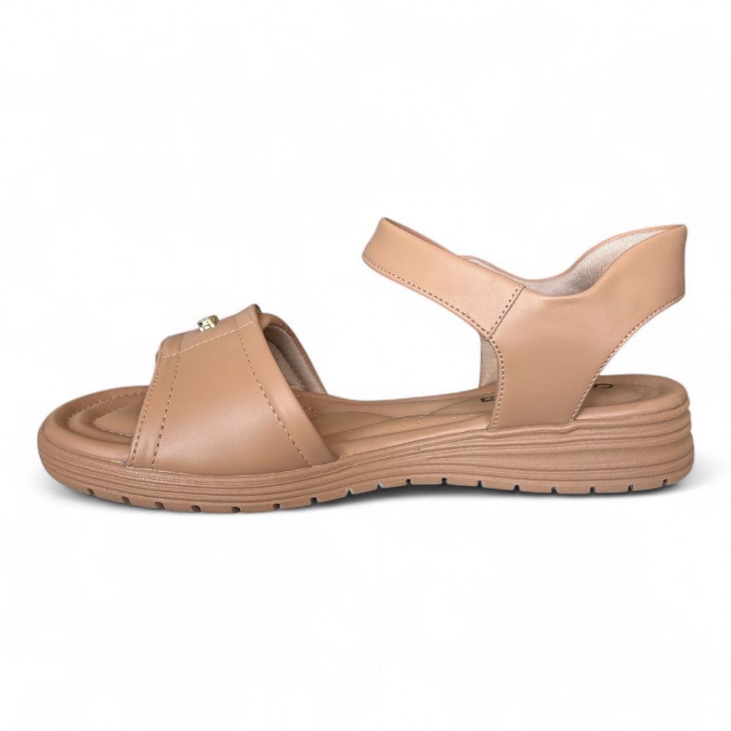 Sandália Feminina Velcro E Lycra Caqui Comfortflex 2351403-7