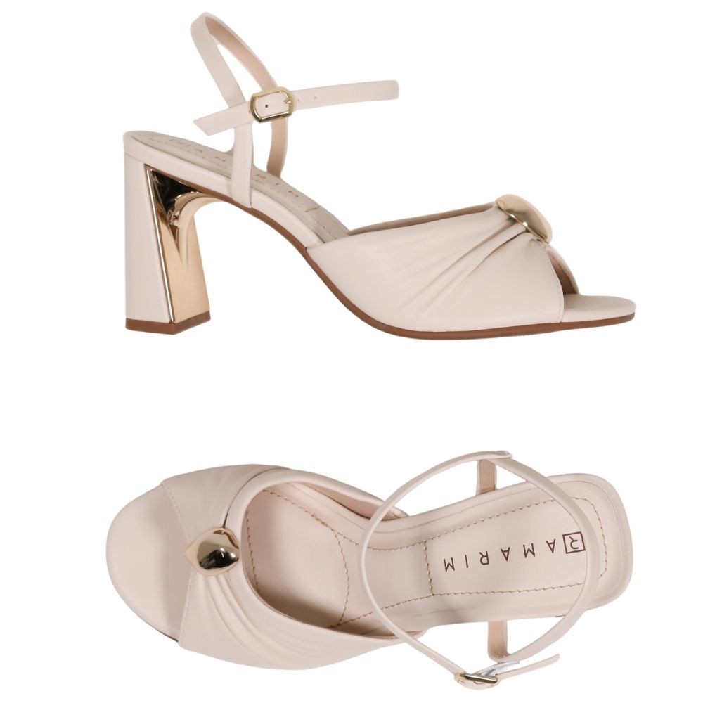Sandália Feminina Salto Geométrico Off White Ramarim 2522205-1