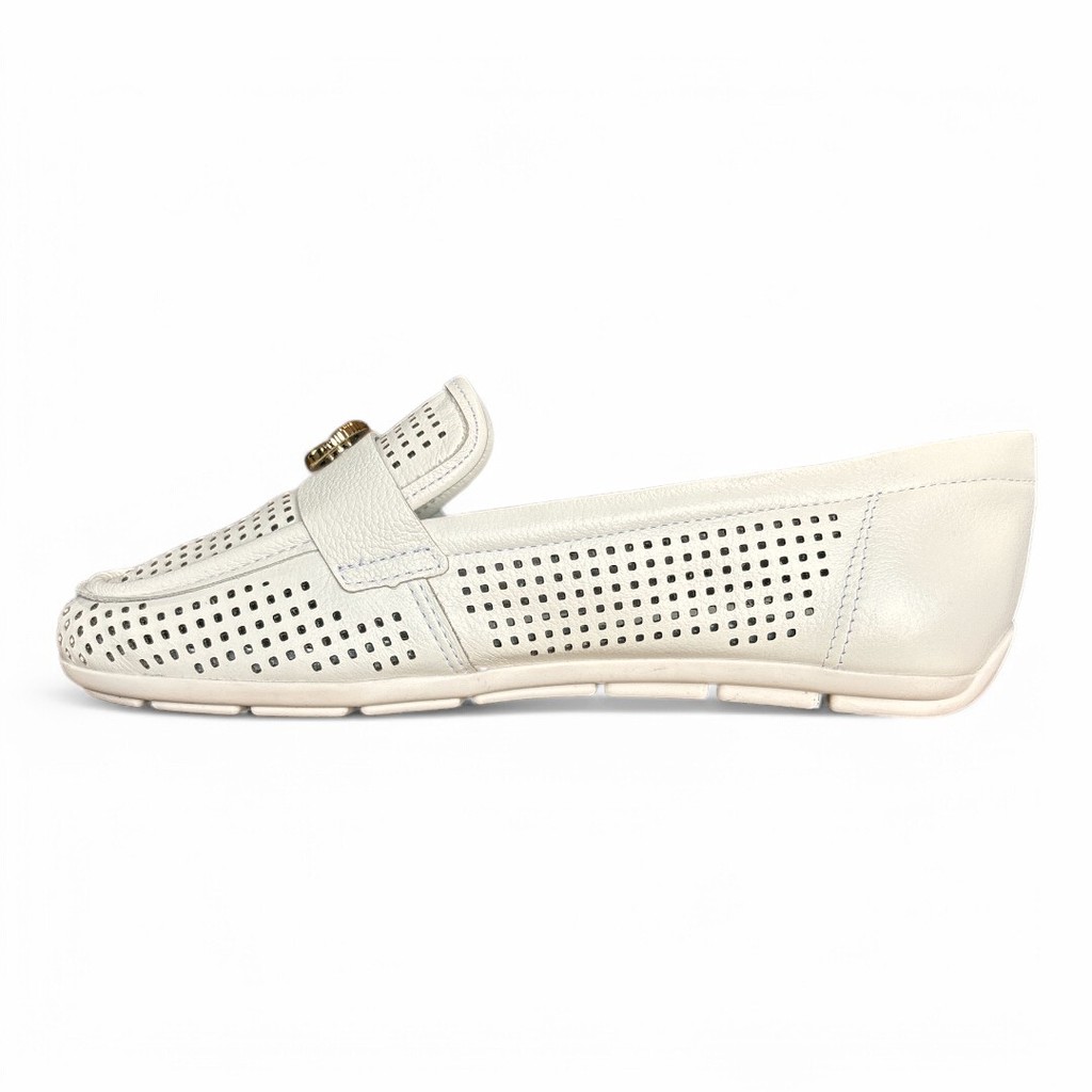 Mocassim Feminino Couro Off White Vazado Comfortflex 2561332-1
