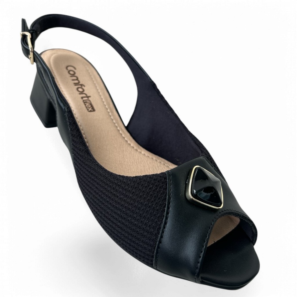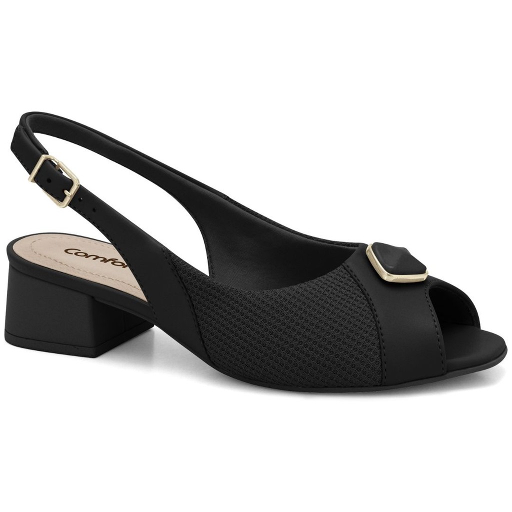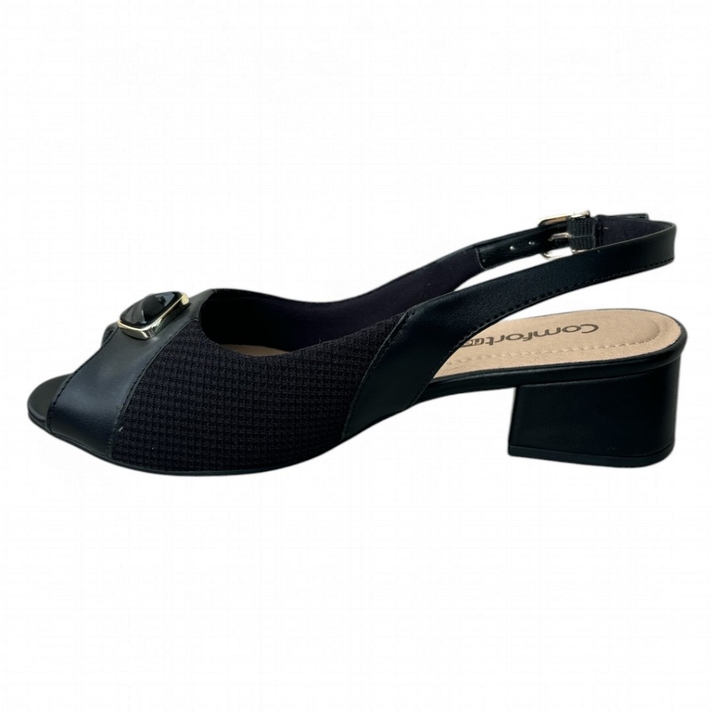 Mule Peep Toe Calce Fácil Lycra Preto Comfortflex 2464431-2