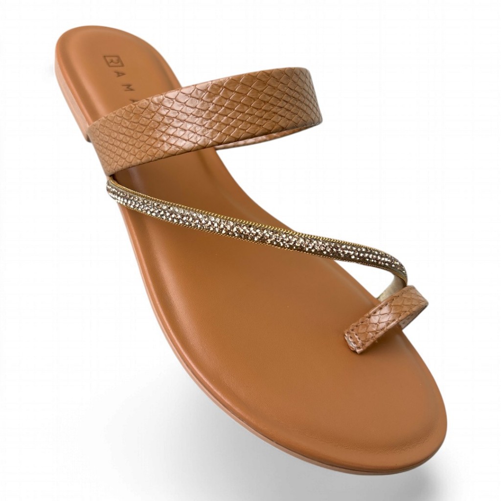 Rasteira Feminina Ramarim Camel Salto Baixo 2414202-1