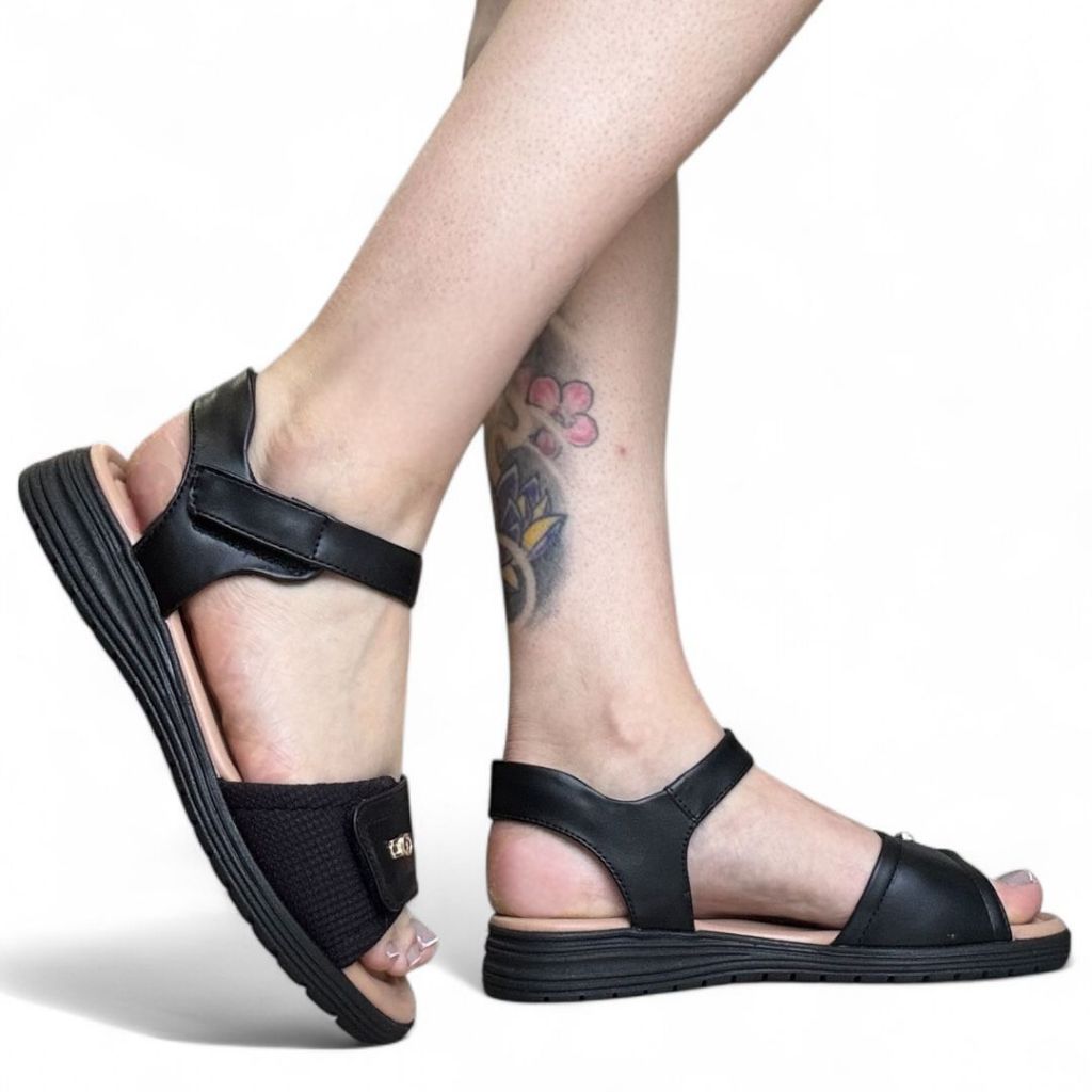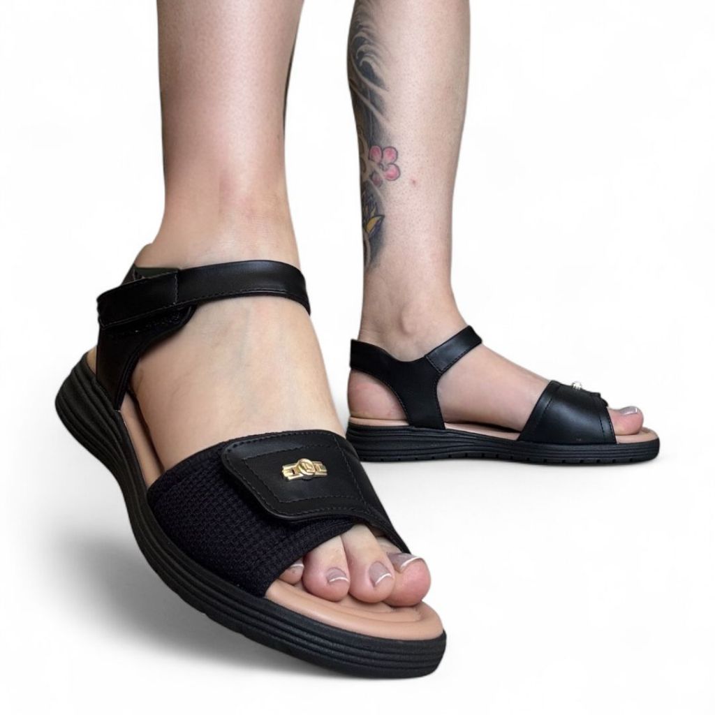 Sandália Feminina Velcro E Lycra Preto Comfortflex 2351403-8