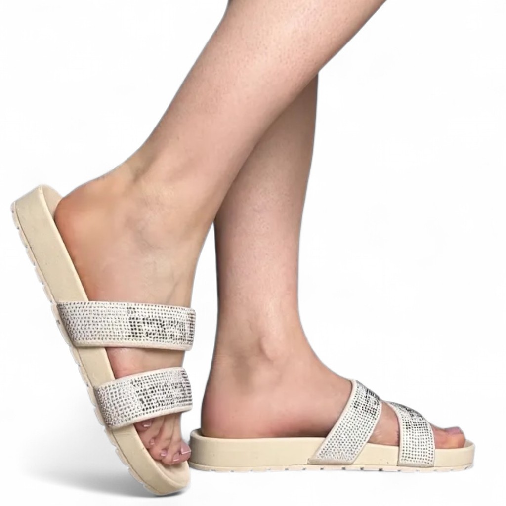 Chinelo Slide Colcci Feminino Creme Strass Conforto e Estilo 401217718-2
