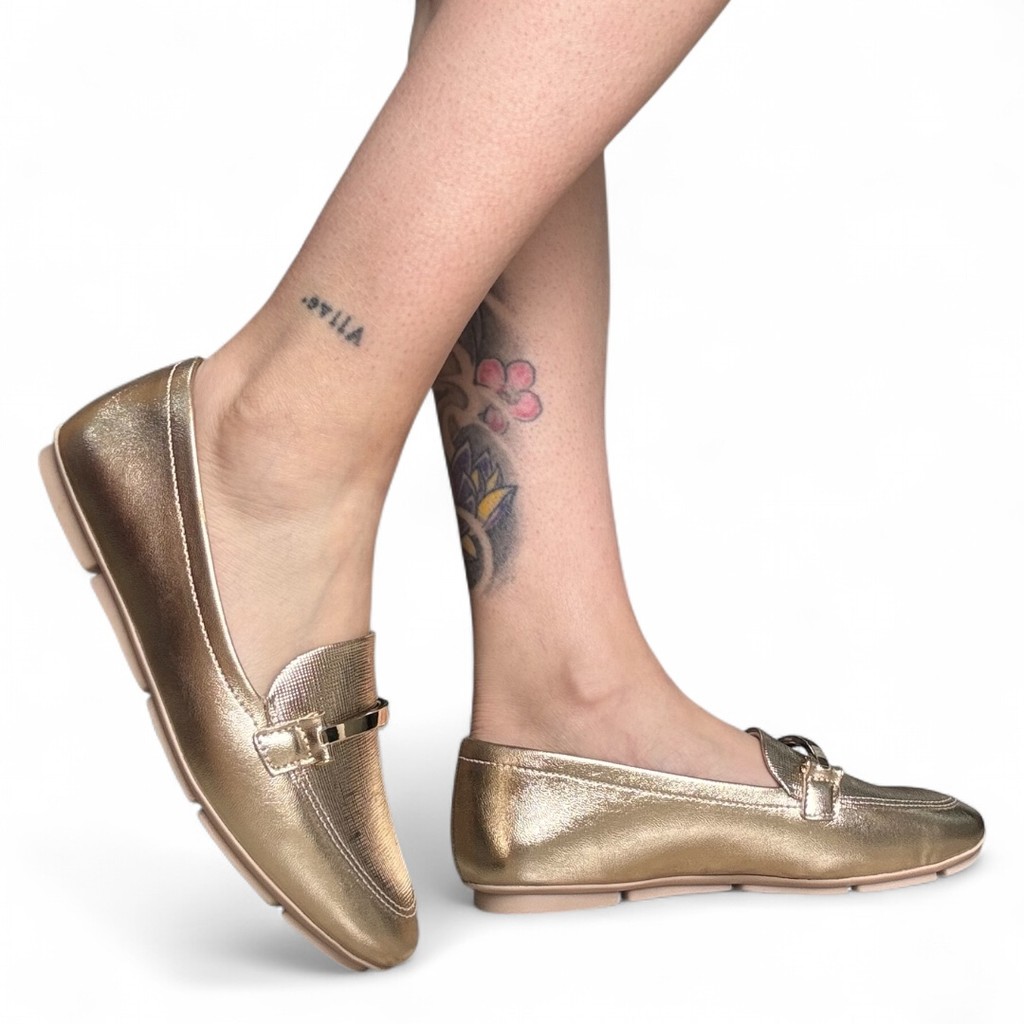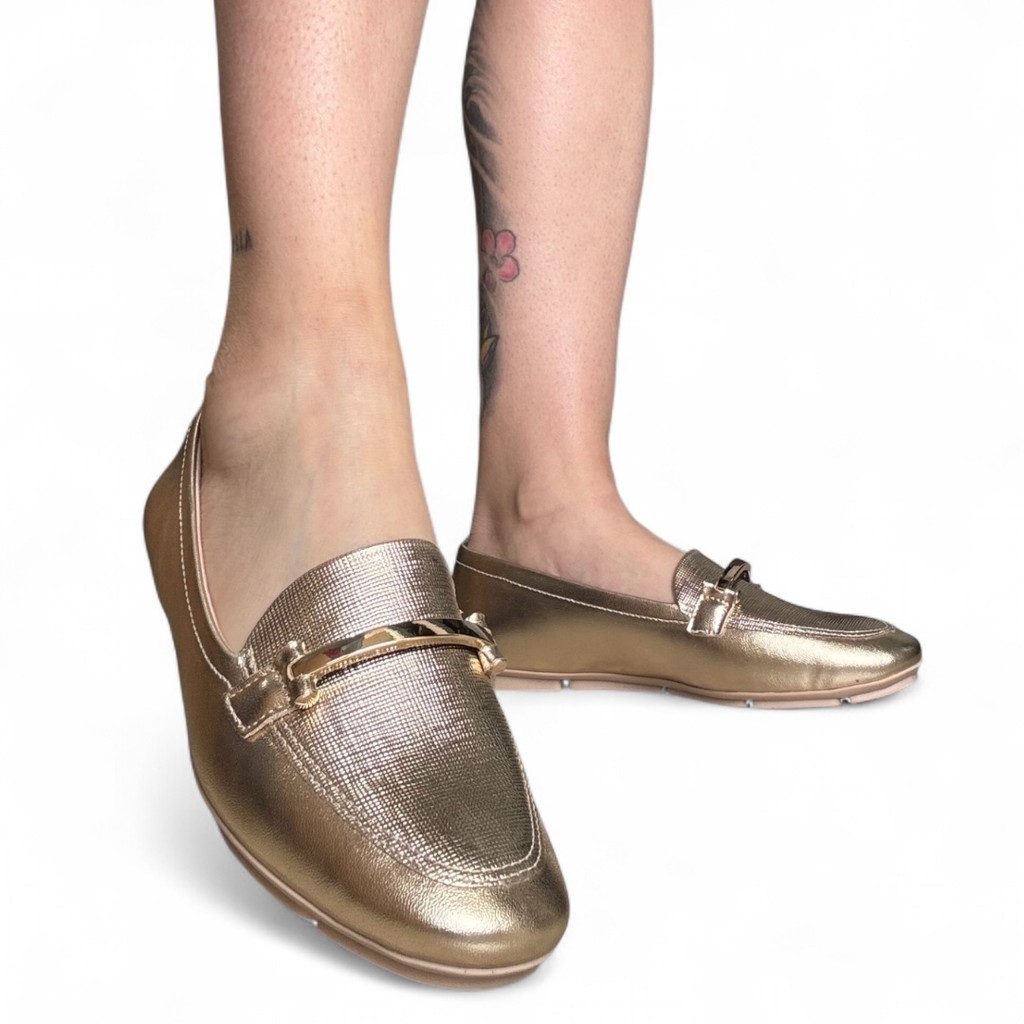 Mocassim Feminino Casual Ouro Antiderrapante Flexível Comfortflex 2563404-7