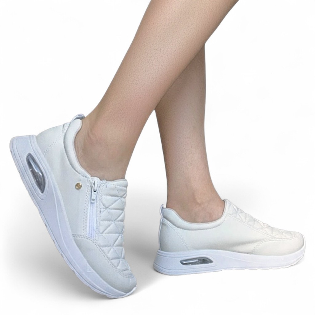 Tênis Feminino Comfortflex Branco Zíper Lateral Matelassê 2548405-3