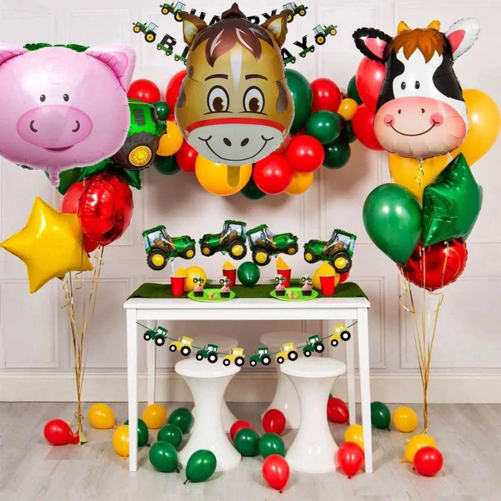6 Balão Metalizado Fazendinha Cabeça Cavalo Vaca e Porco 32cm Centro de Mesa - 2 cada