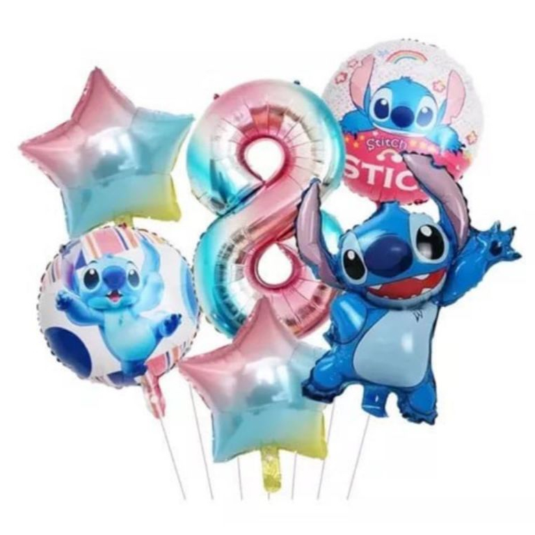 Kit 6 Balões Metalizado Lilo Stitch Estrela Tie Dye Número 8
