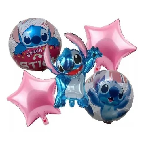 Kit 5 Balão Metalizado Lilo Stitch&* Feliz Corpo Estrela Rosa