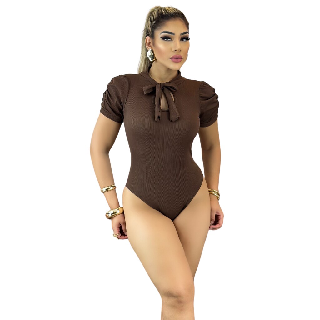 Body Feminino Malha Ribana Marrom Princesinha com Laço
