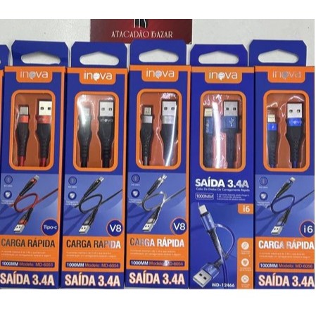 ATACADO COM 5/10/15/20pcs Cabo Inova Usb V8 Android /Type C/iphone 1Metros