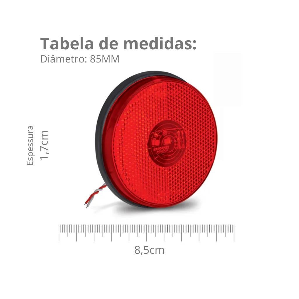 Kit com 6 Lanterna Lateral Led Redonda 85MM Bivolt Vermelha