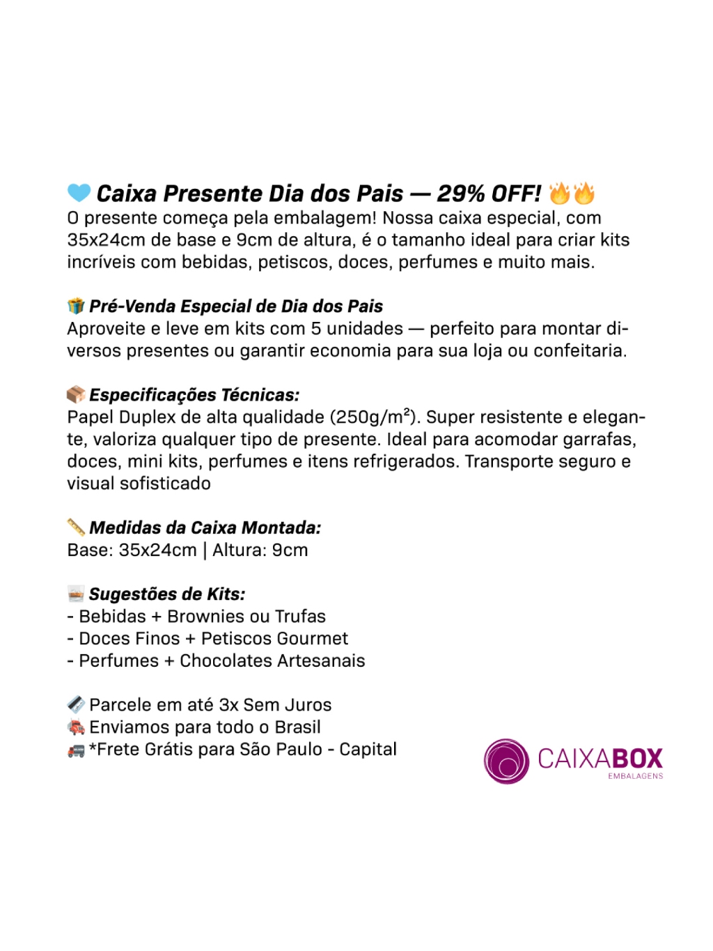Caixa de Presente Kraft, Preta e Branca 35x24x9cm | Caixa Presente Resistente Sofisticada Moderna