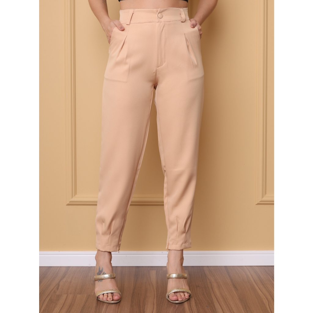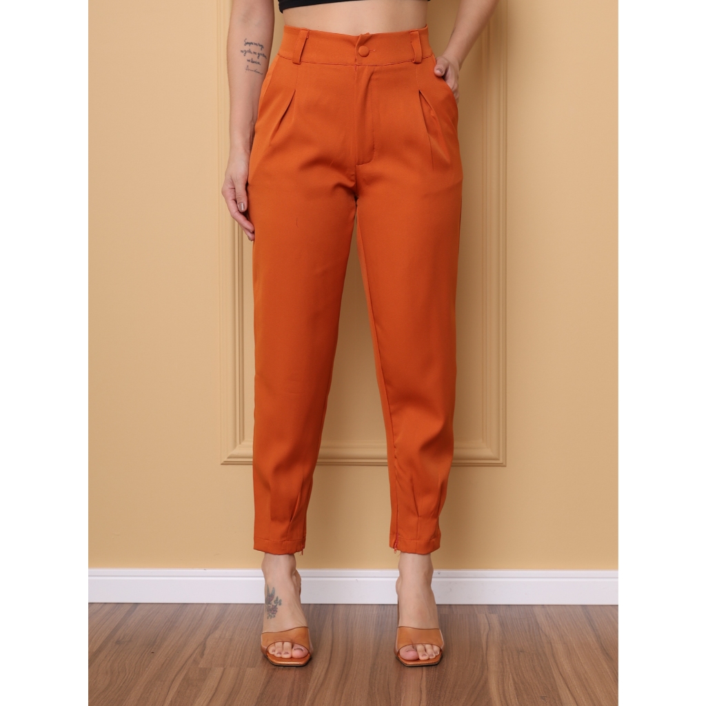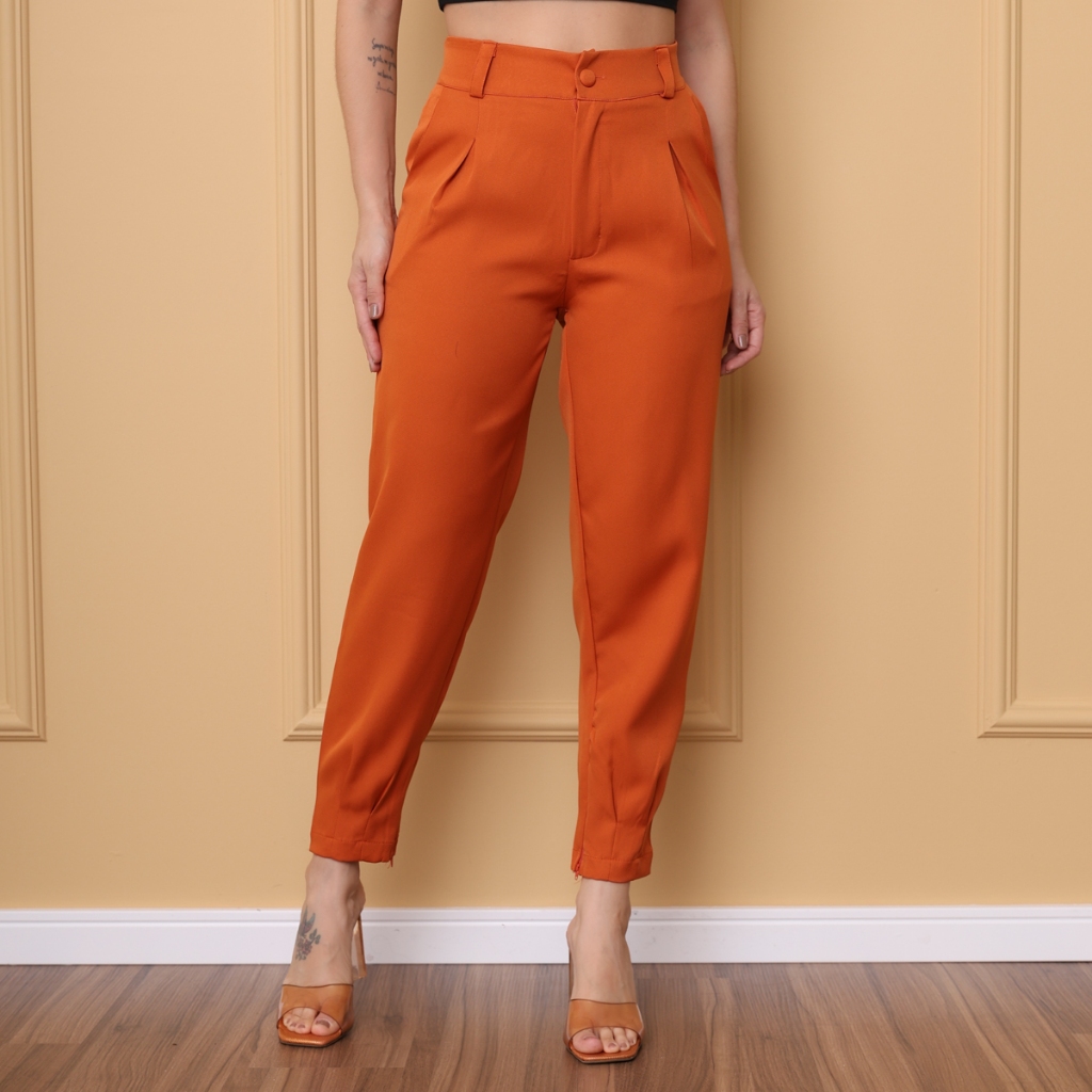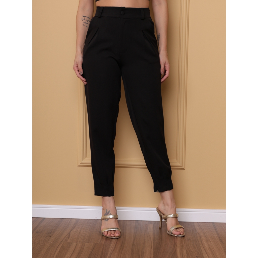 Calça Cenoura Jogger Alfaiataria Feminina Barra Com Ziper