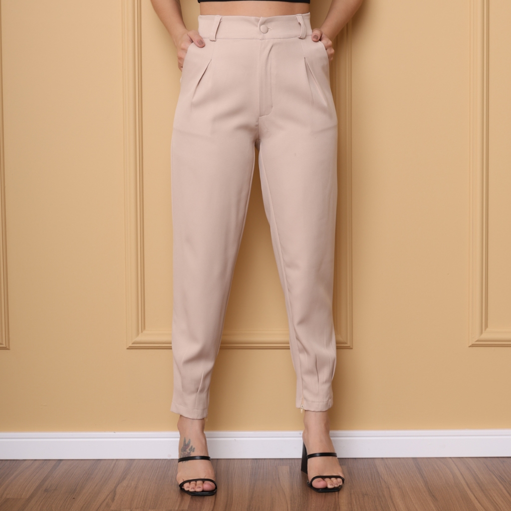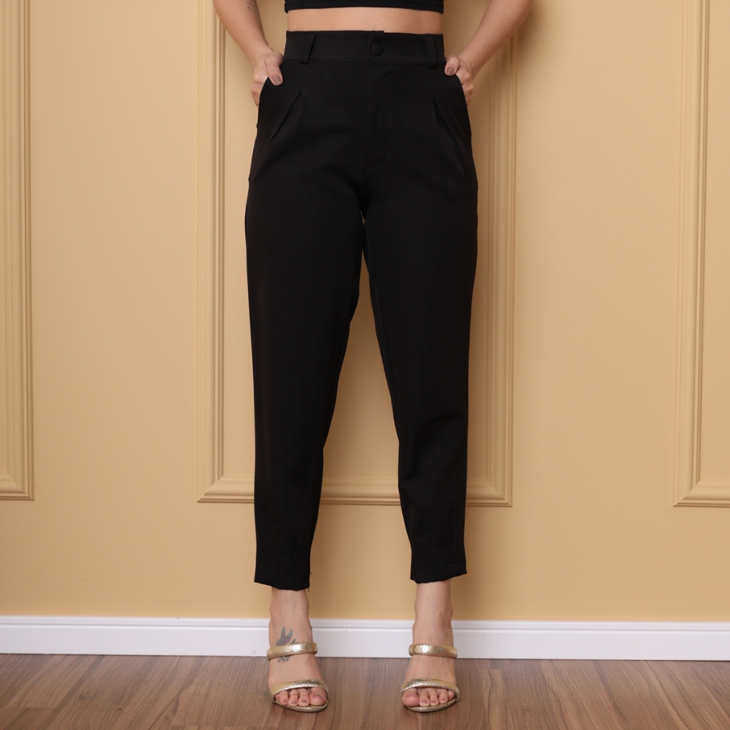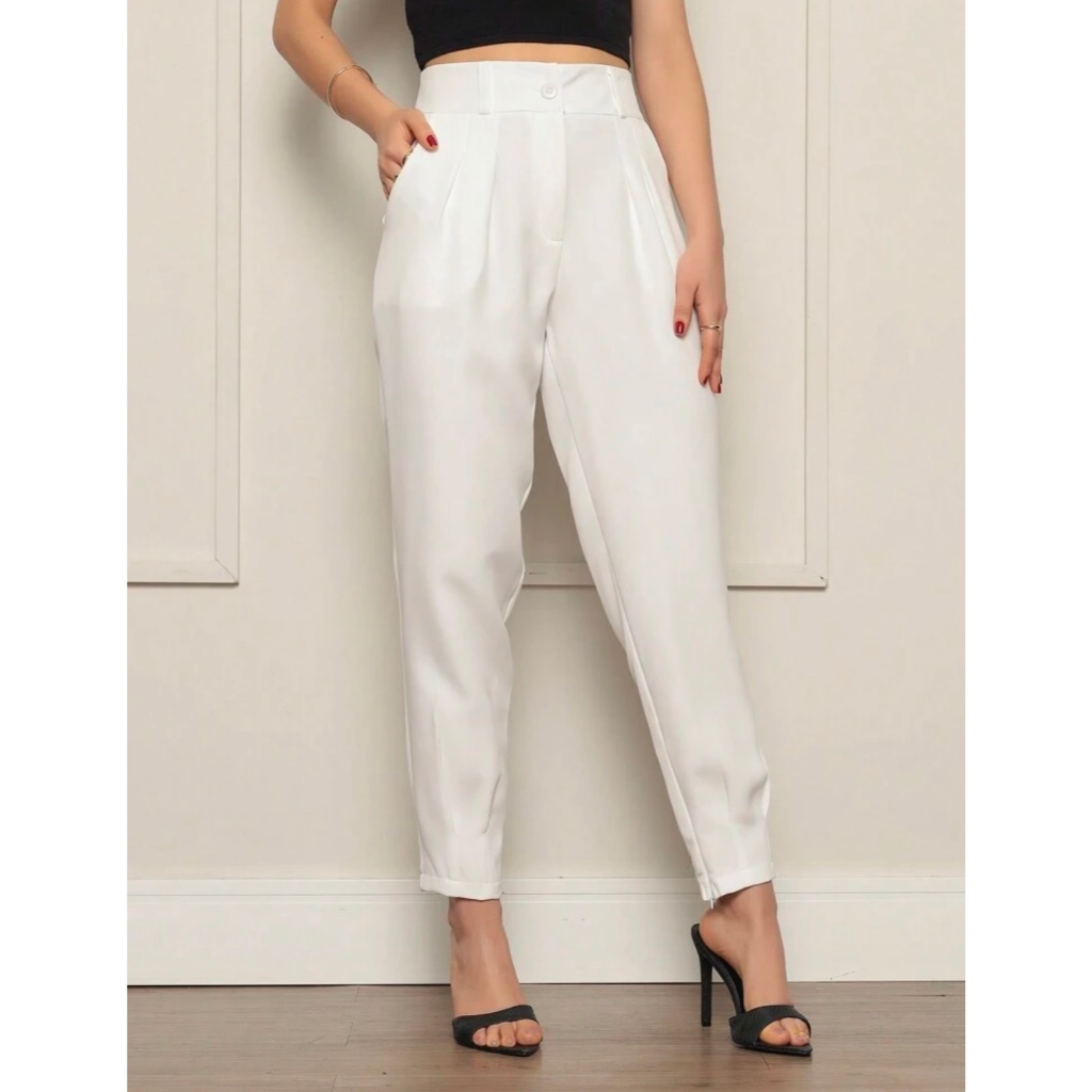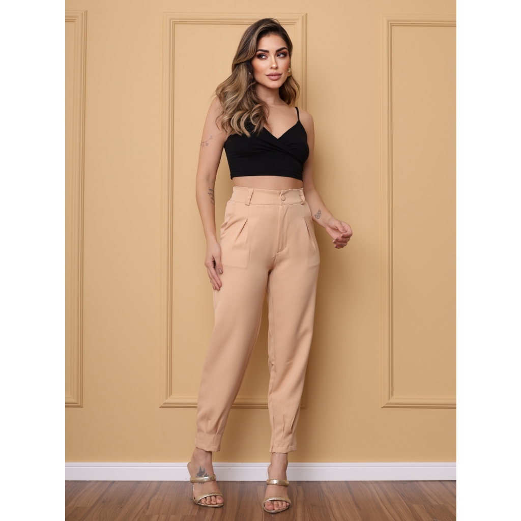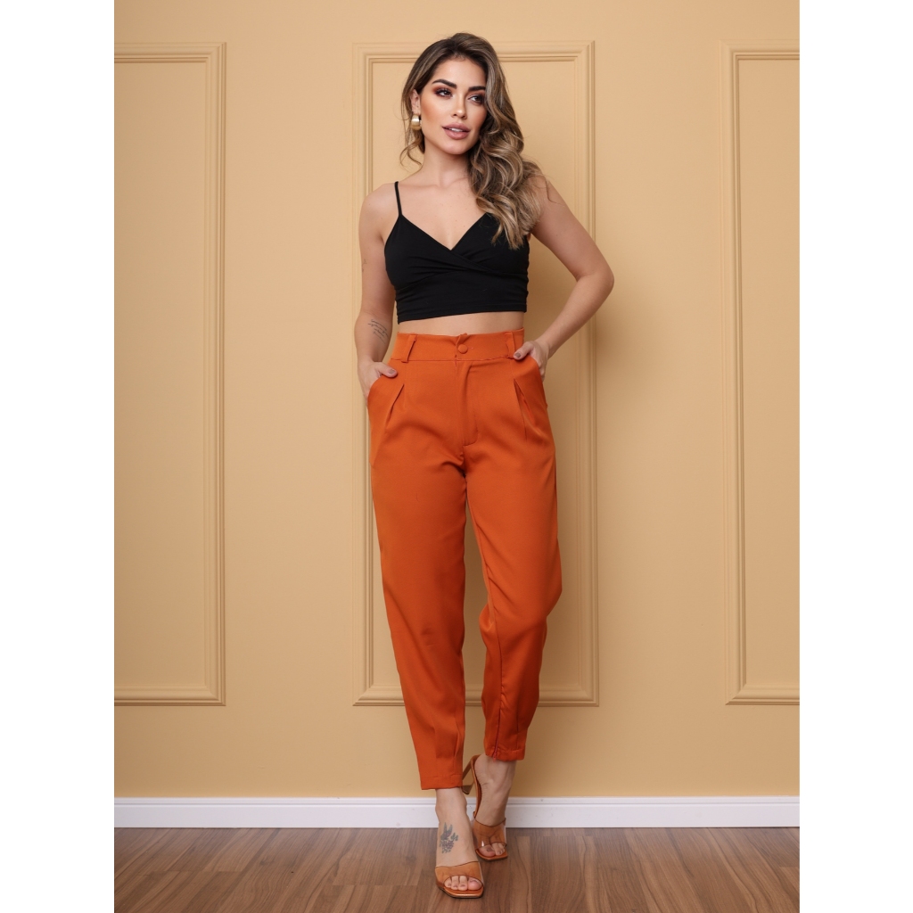 Calça Cenoura Jogger Alfaiataria Feminina Barra Com Ziper