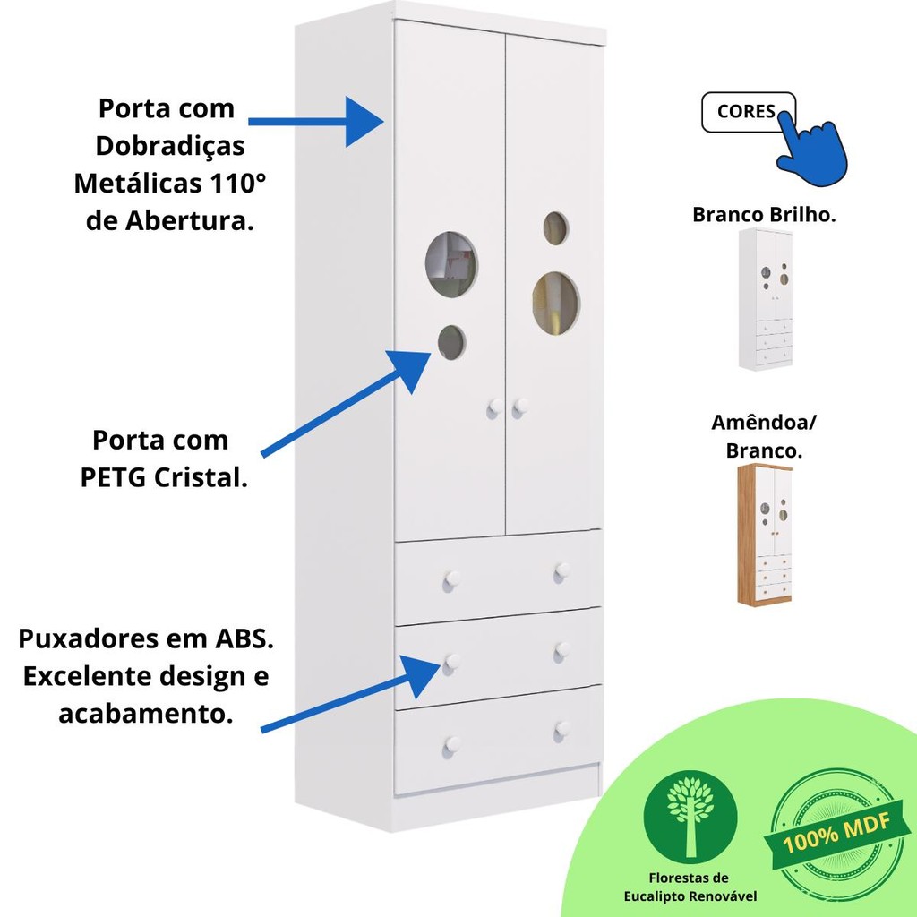 Guarda Roupa Infantil Bolinha 2 Portas 3 Gavetas 100% MDF Faura