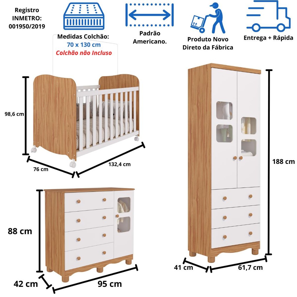 Quarto de Bebê Completo Berço Americano Uli Guarda Roupa Uli 2 Portas Cômoda Uli 100%MDF