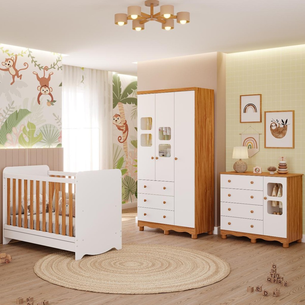 Quarto Bebê Completo com Berço Americano Ben 3 Em1 Guarda Roupa 3 Portas e Cômoda 4 Gavetas 100%MDF