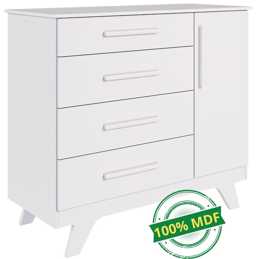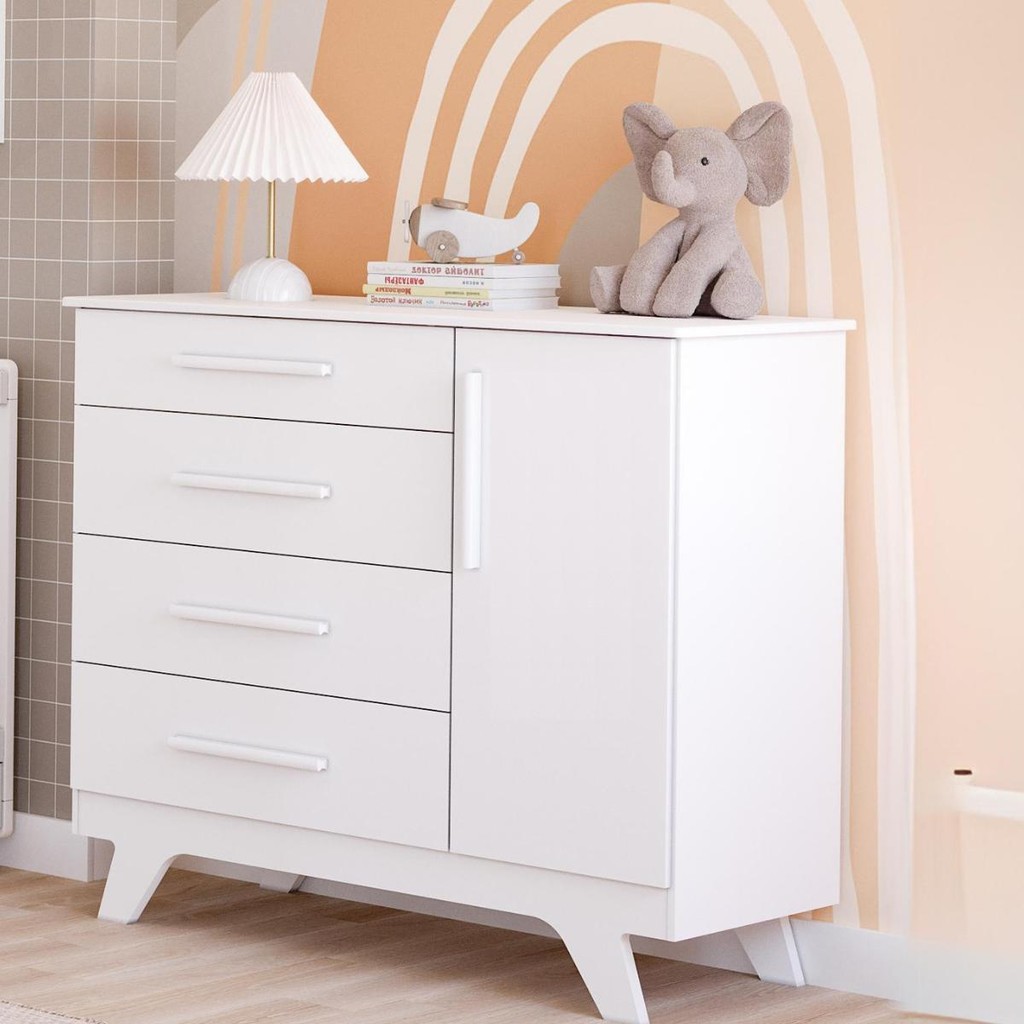 Cômoda Infantil Retro 100% MDF 1 Porta Lisa 4 Gavetas