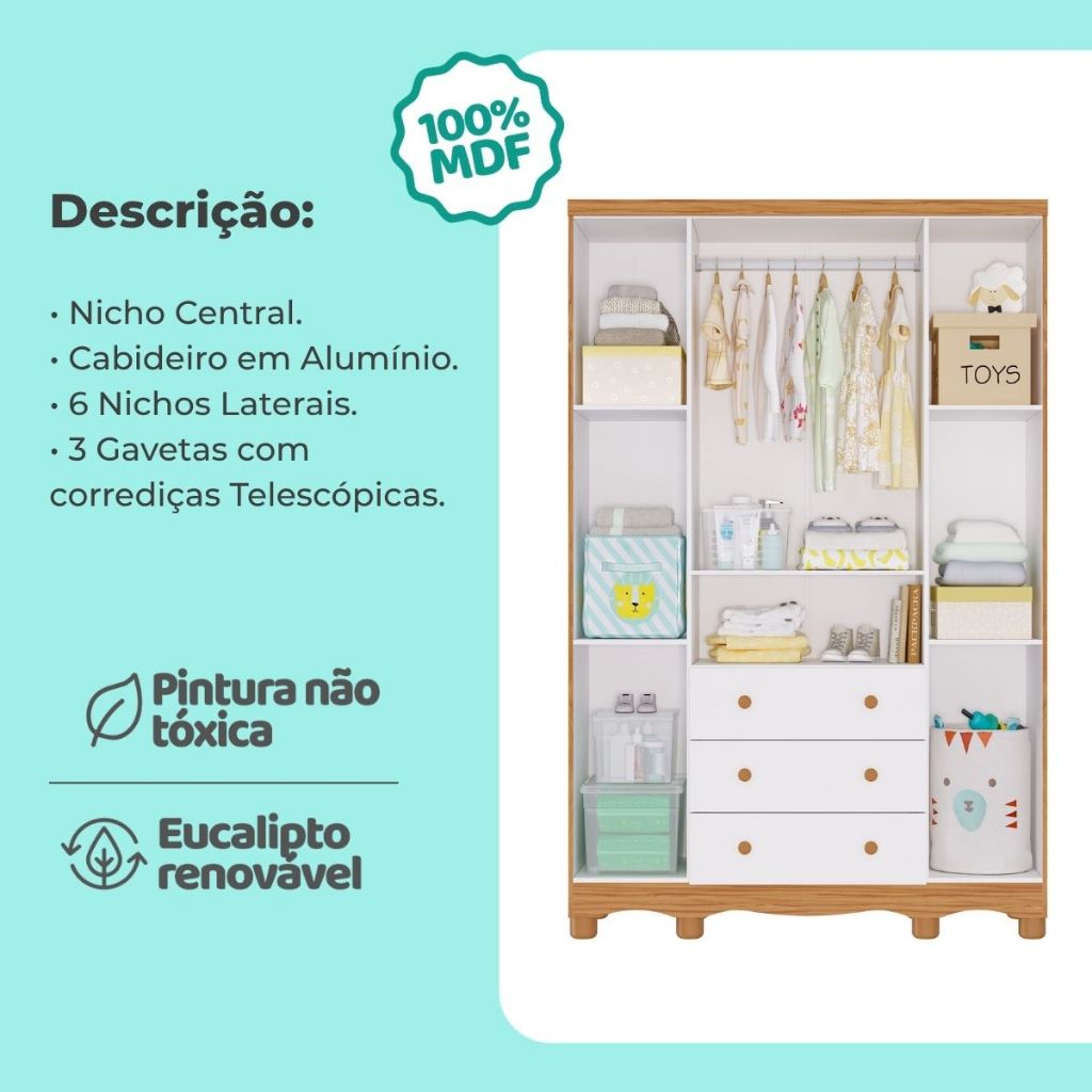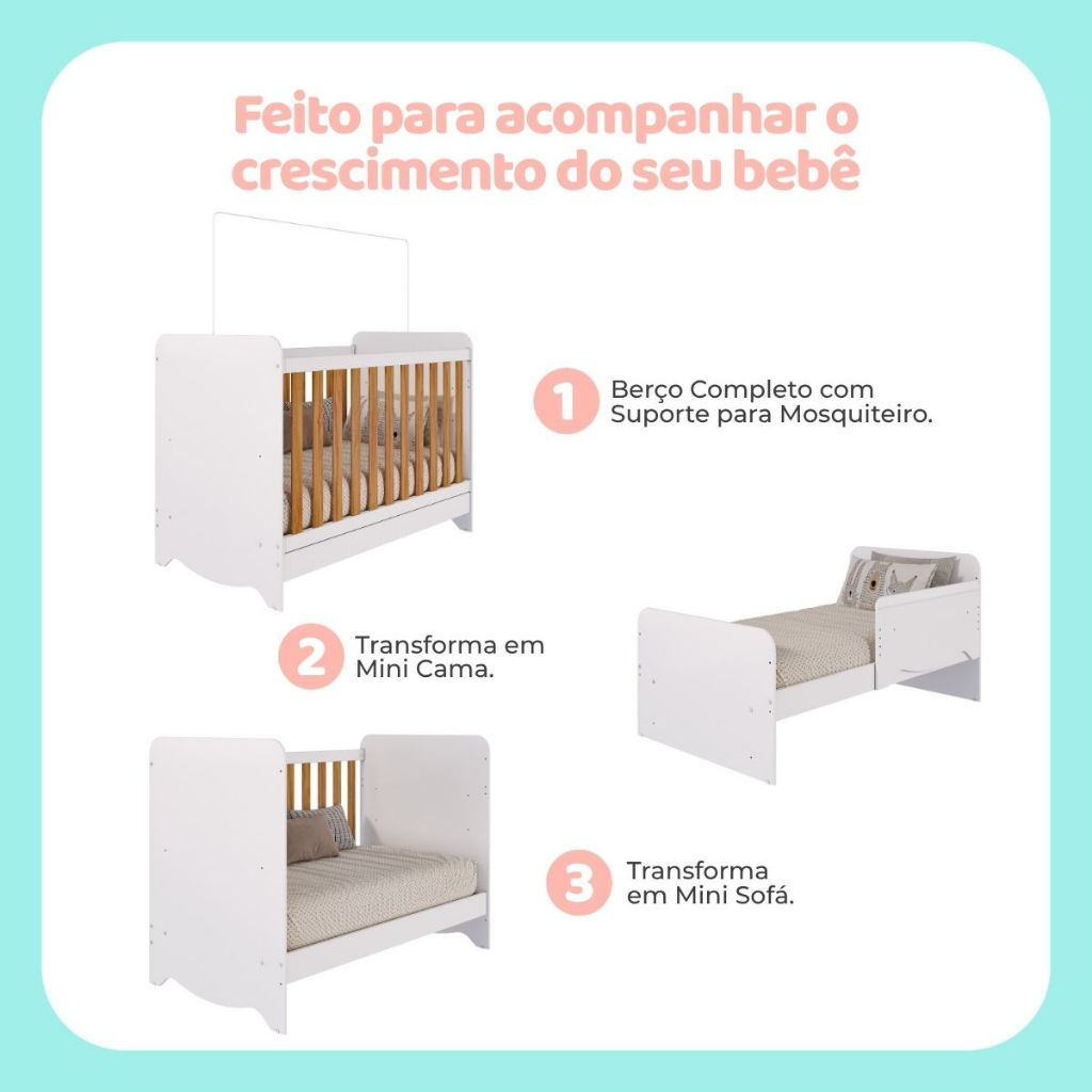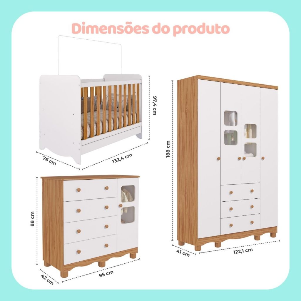 Quarto Bebê Completo Berço Americano Ben 3 Em1 Guarda Roupa 4 Portas e Cômoda Uli 4 Gavetas 100% MDF