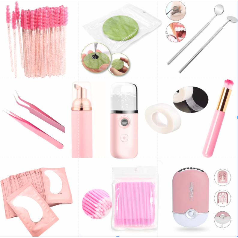 Kit Iniciante Extensão Alongamento De Cilios Nano Vaporizador Ventilador Escovinha Microbrush Pinça