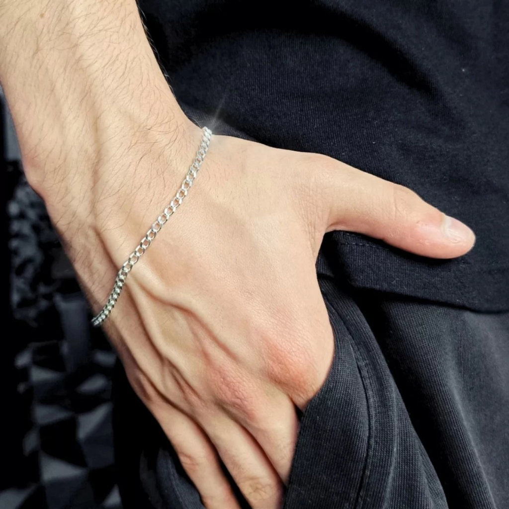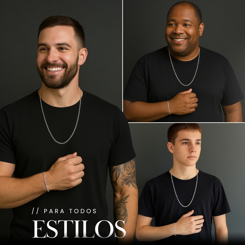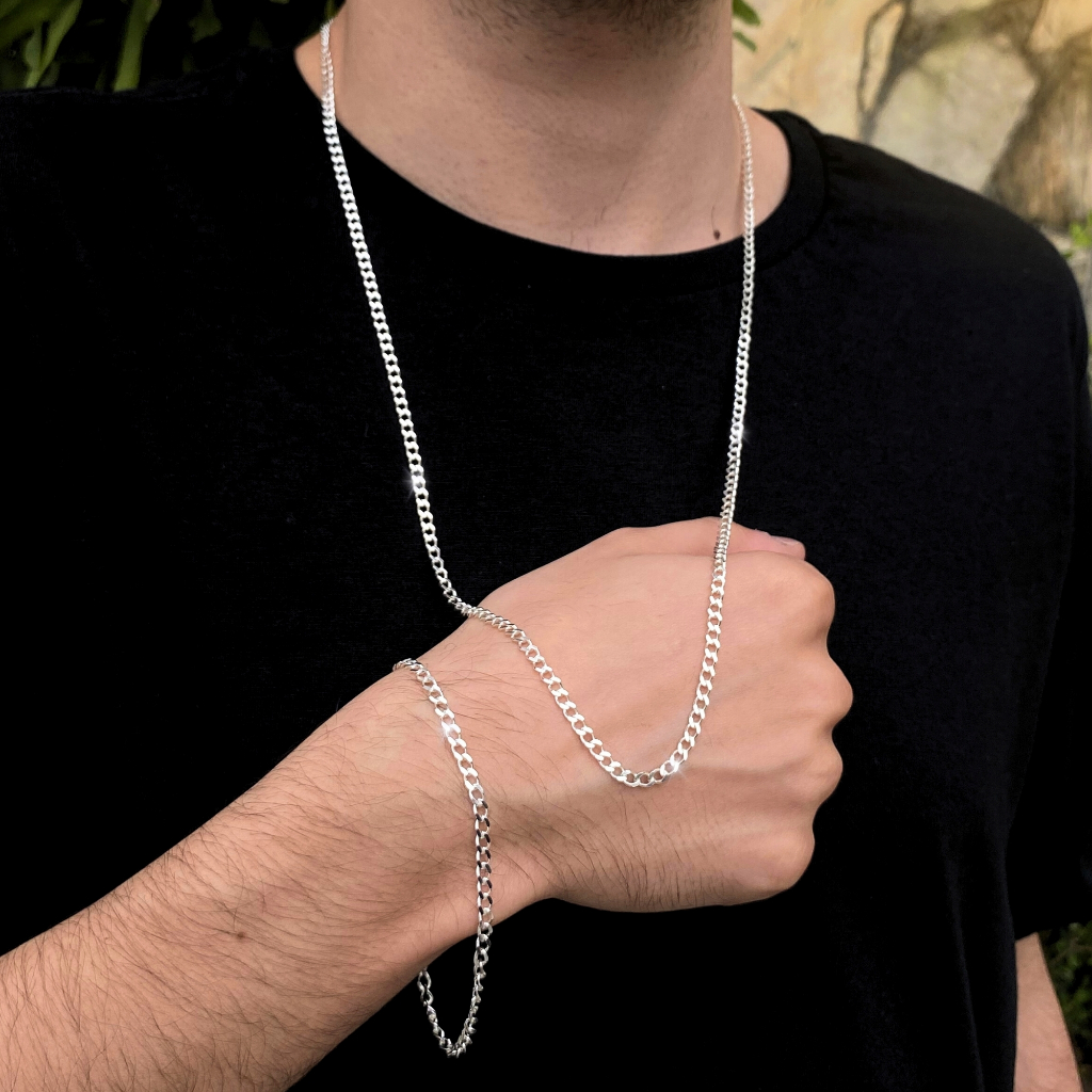 Kit Masculino Prata 925 Corrente Cordão + Pulseira Escama de Peixe Conjunto Elegante De Luxo 3m