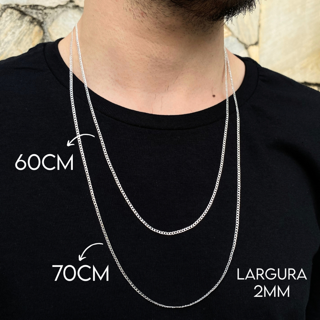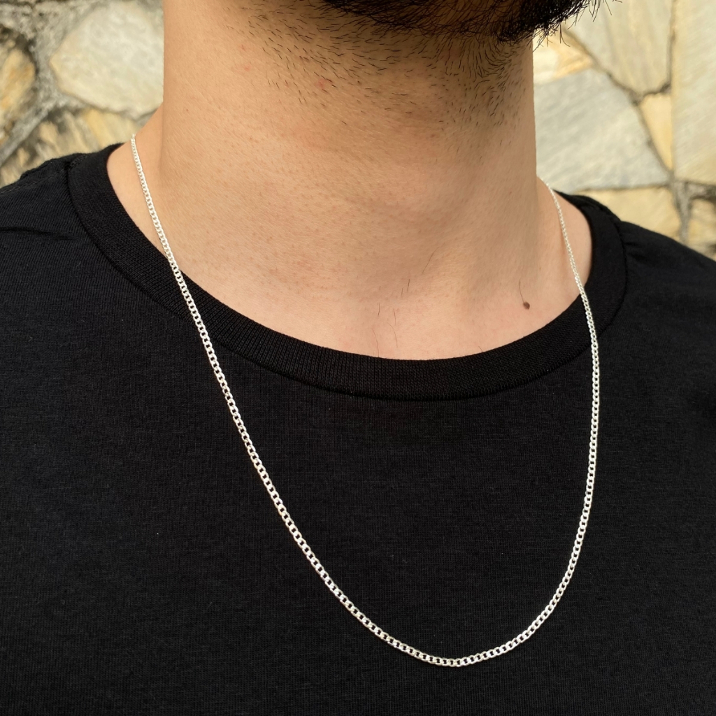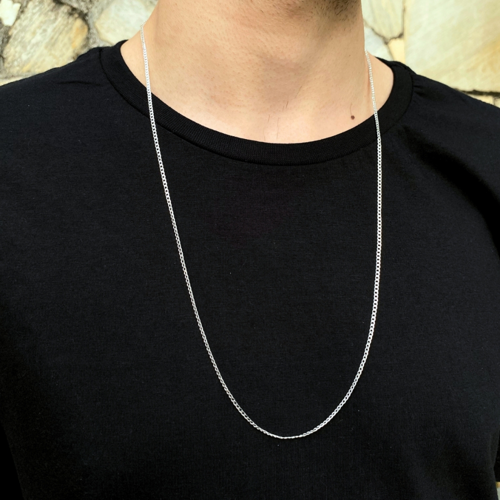 Prata 925 Corrente Grumet Legítima Italiana Cordão Correntinha Masculina 2mm Elo 1x1
