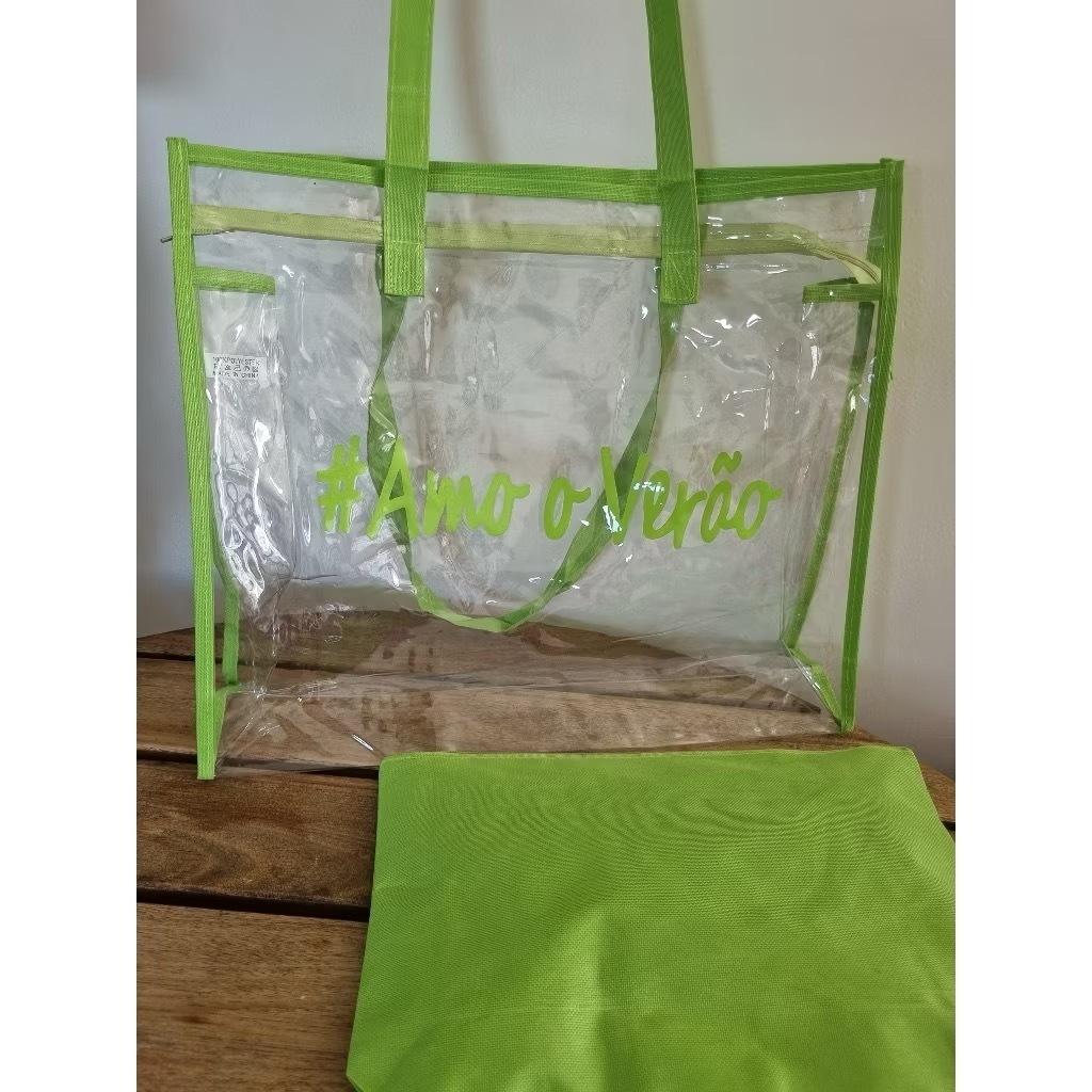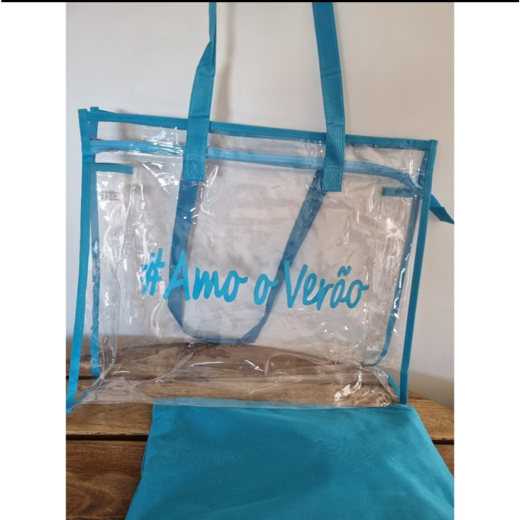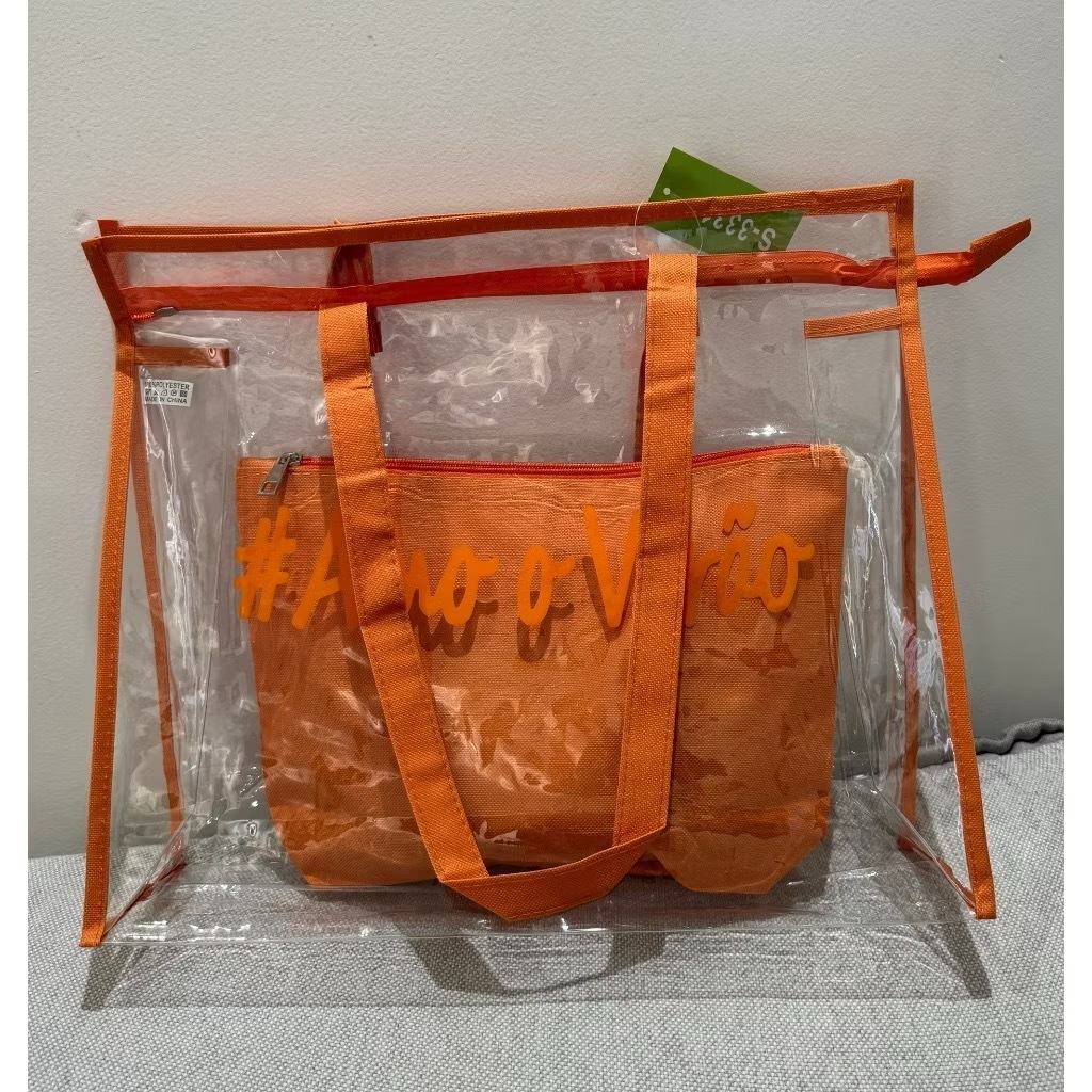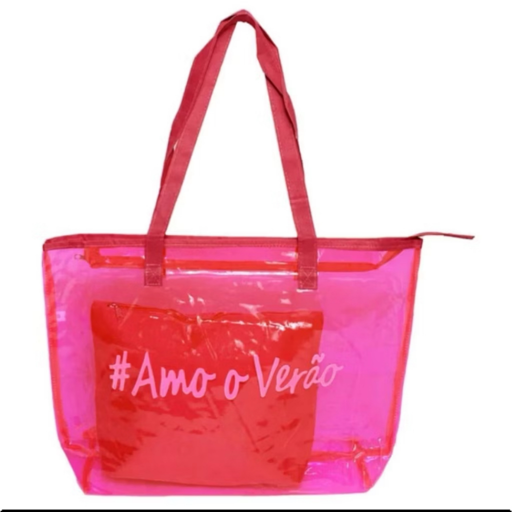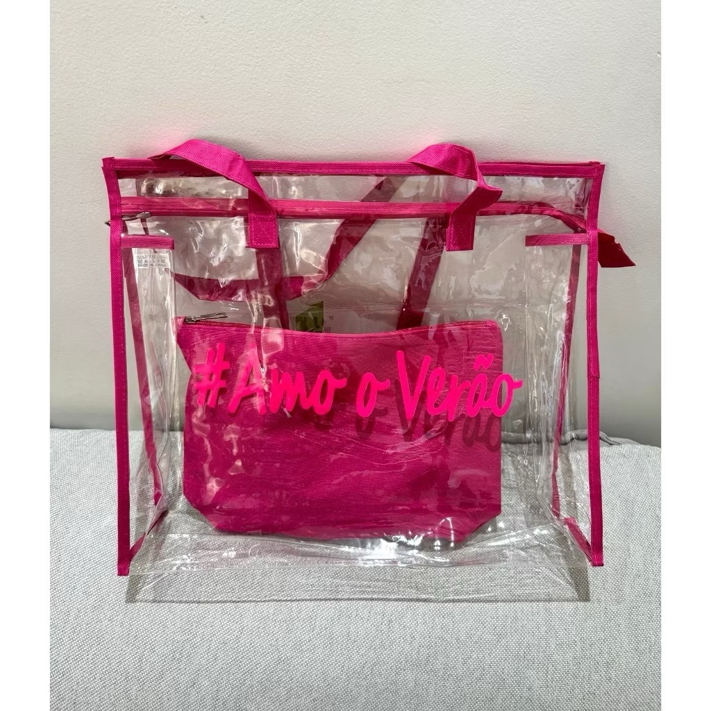 Kit Bolsa Transparente de grande capacidade Sacola de Praia Feminina Silicone Com Necessaire Amo O Verão Impermeável