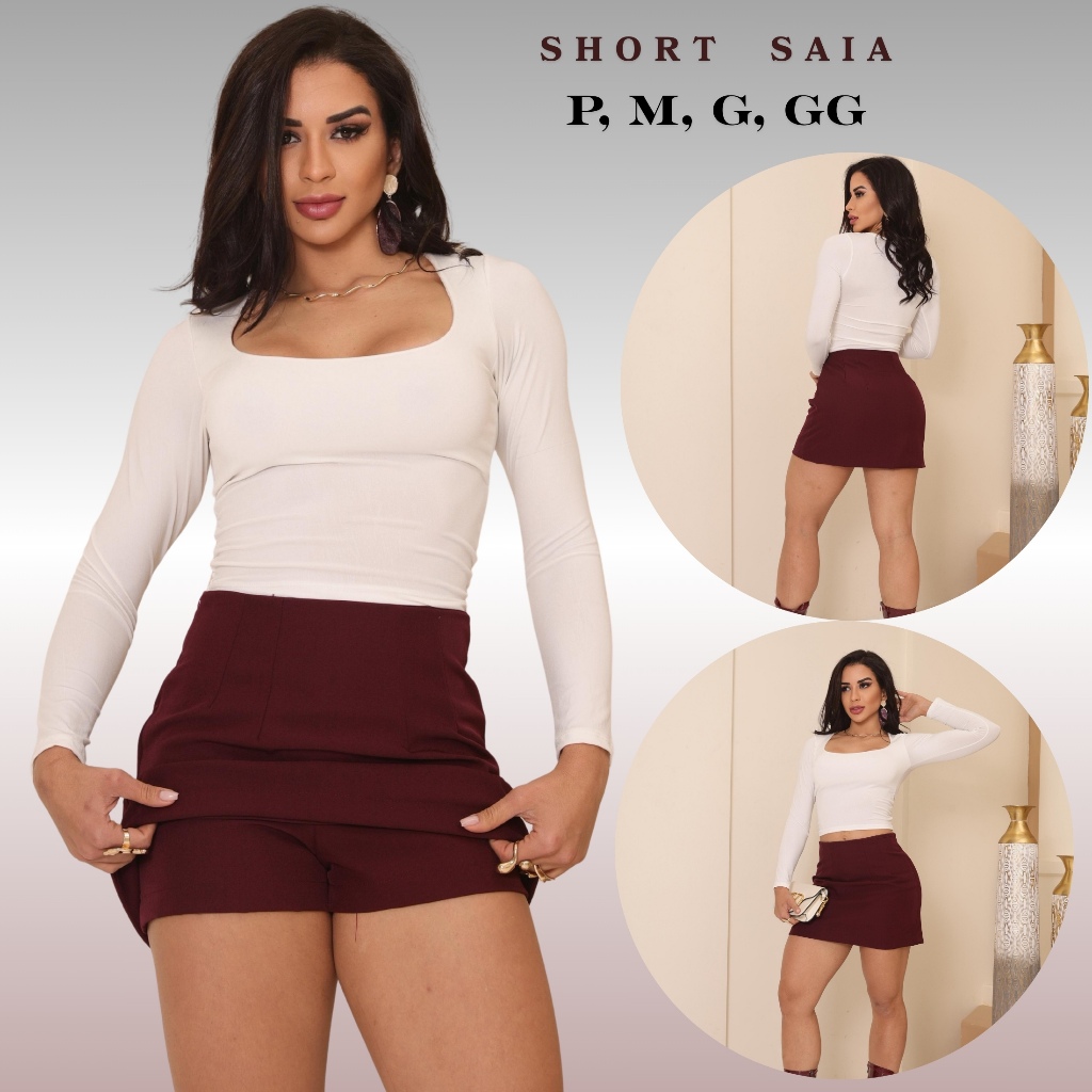 Saia Com Short Feminino Curto Com Ziper Na Lateral Promoção
