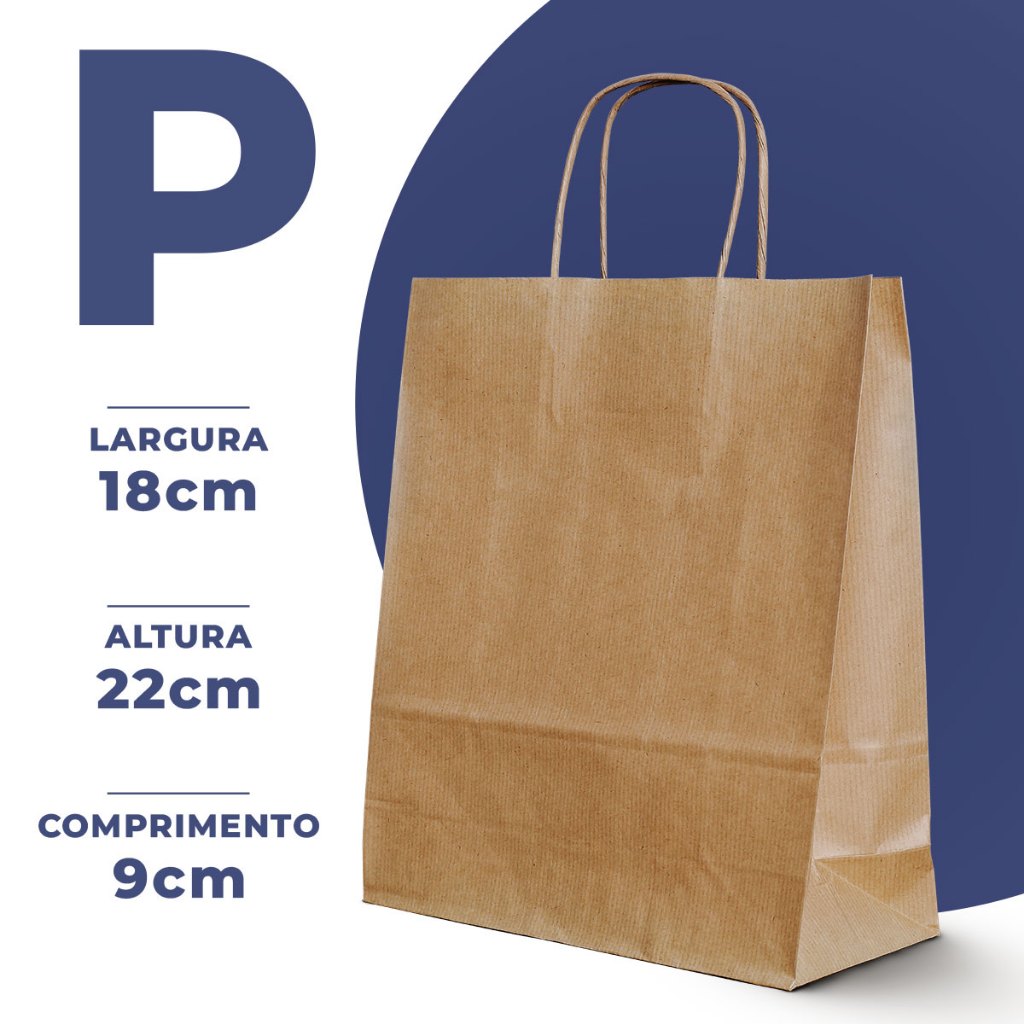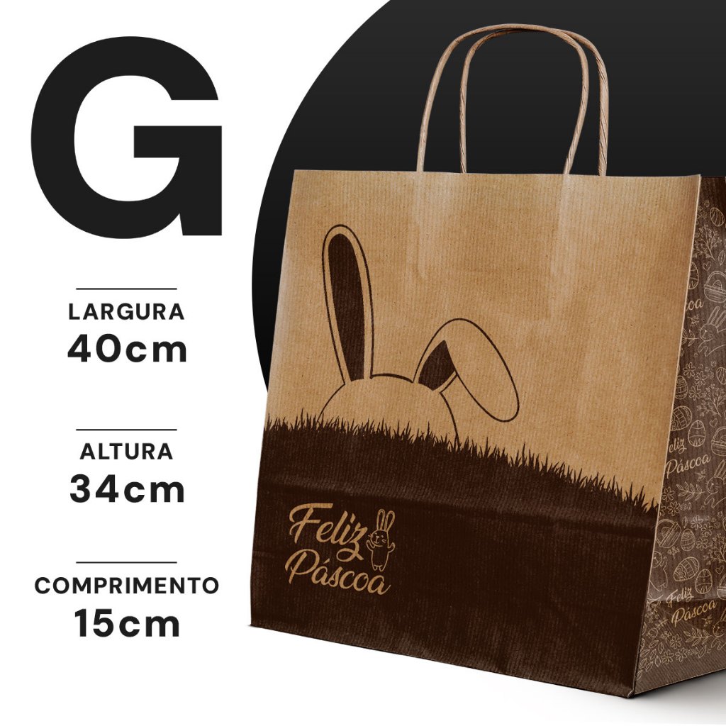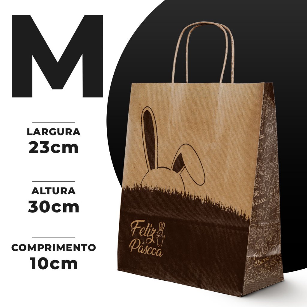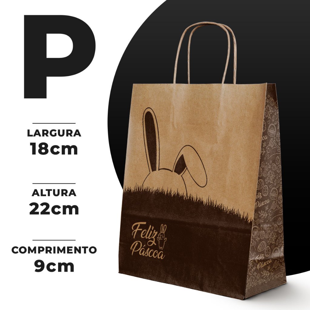 Sacola Papel Kraft Alça PP, P, M, G 50und lembrancinha presente Páscoa caixa sapato natural delivery