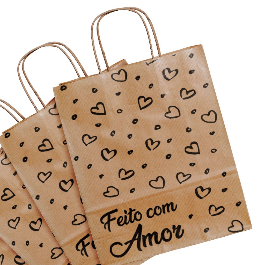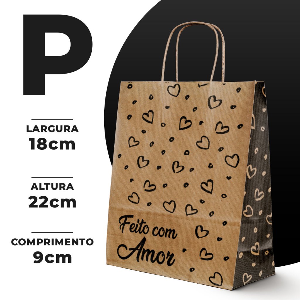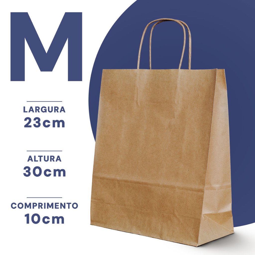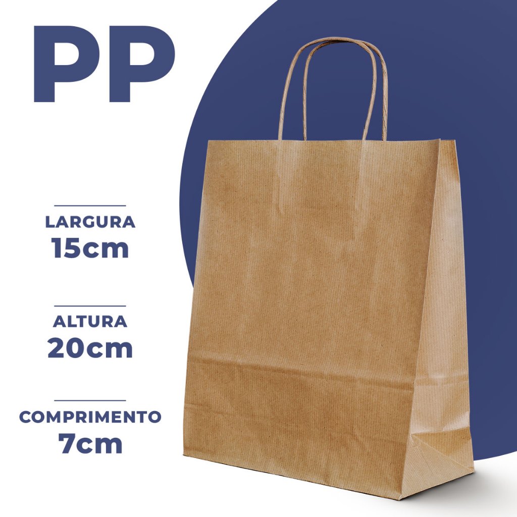 Sacola Papel Kraft Alça PP, P, M, G 50und lembrancinha presente Páscoa caixa sapato natural delivery