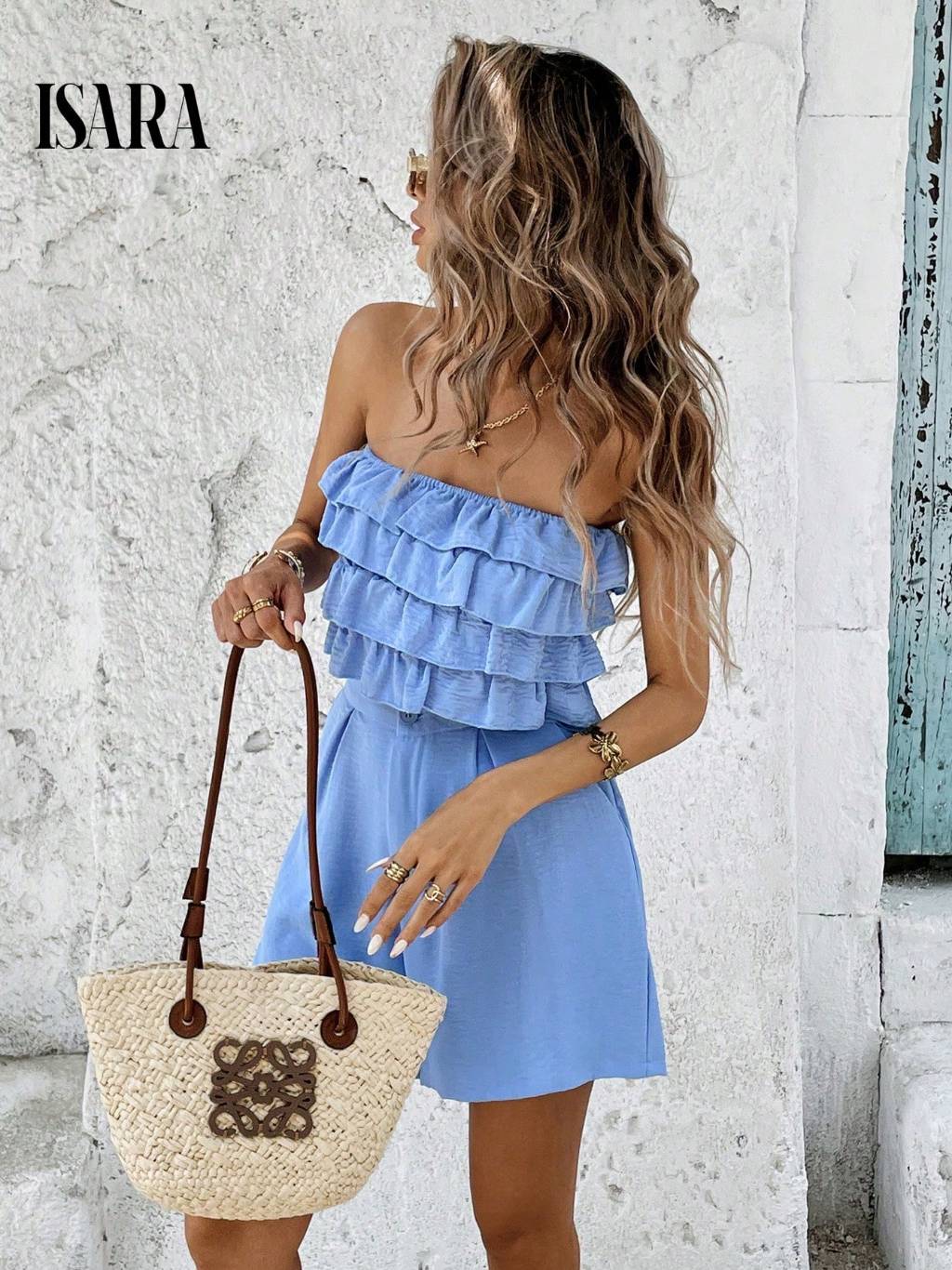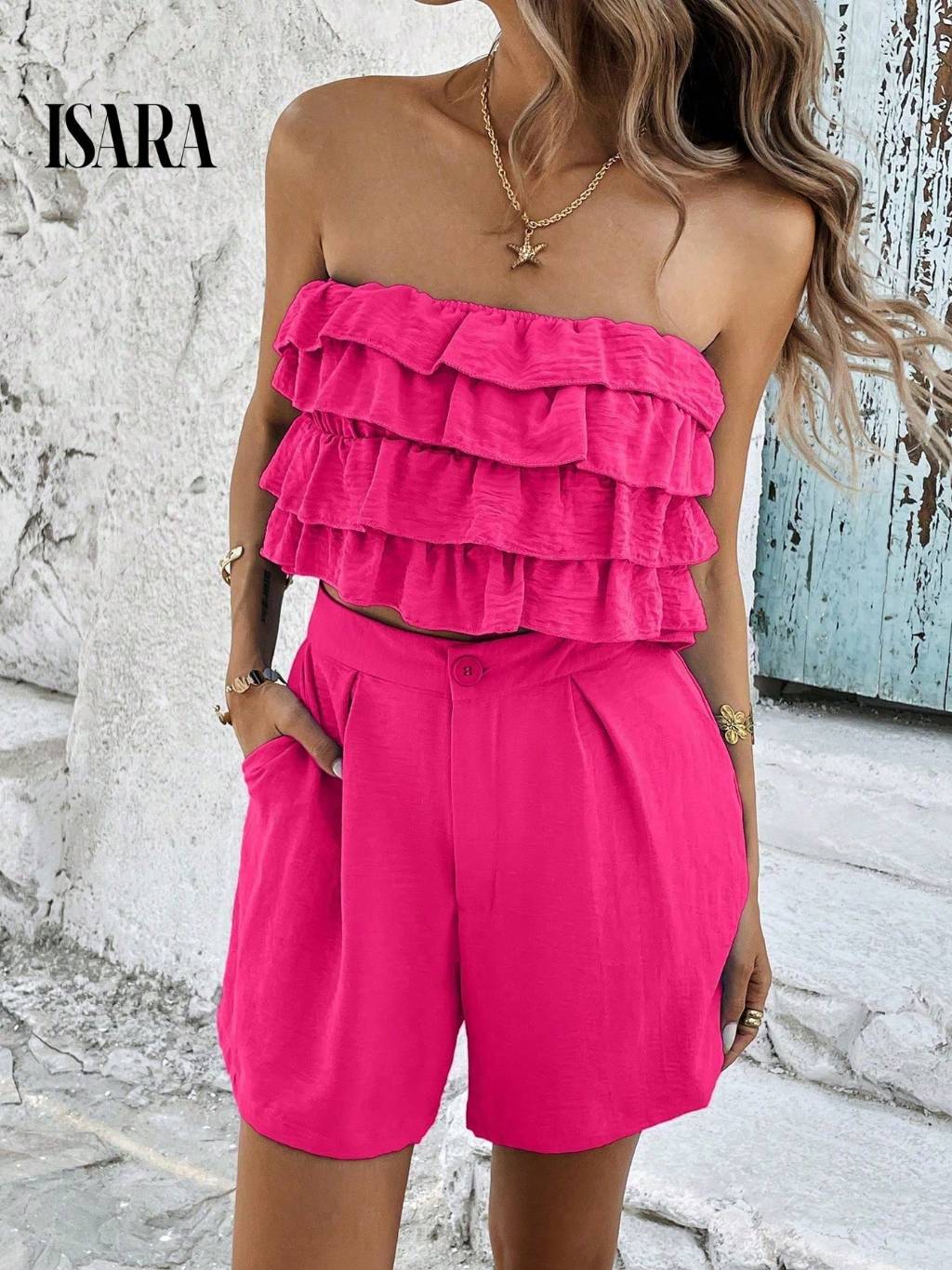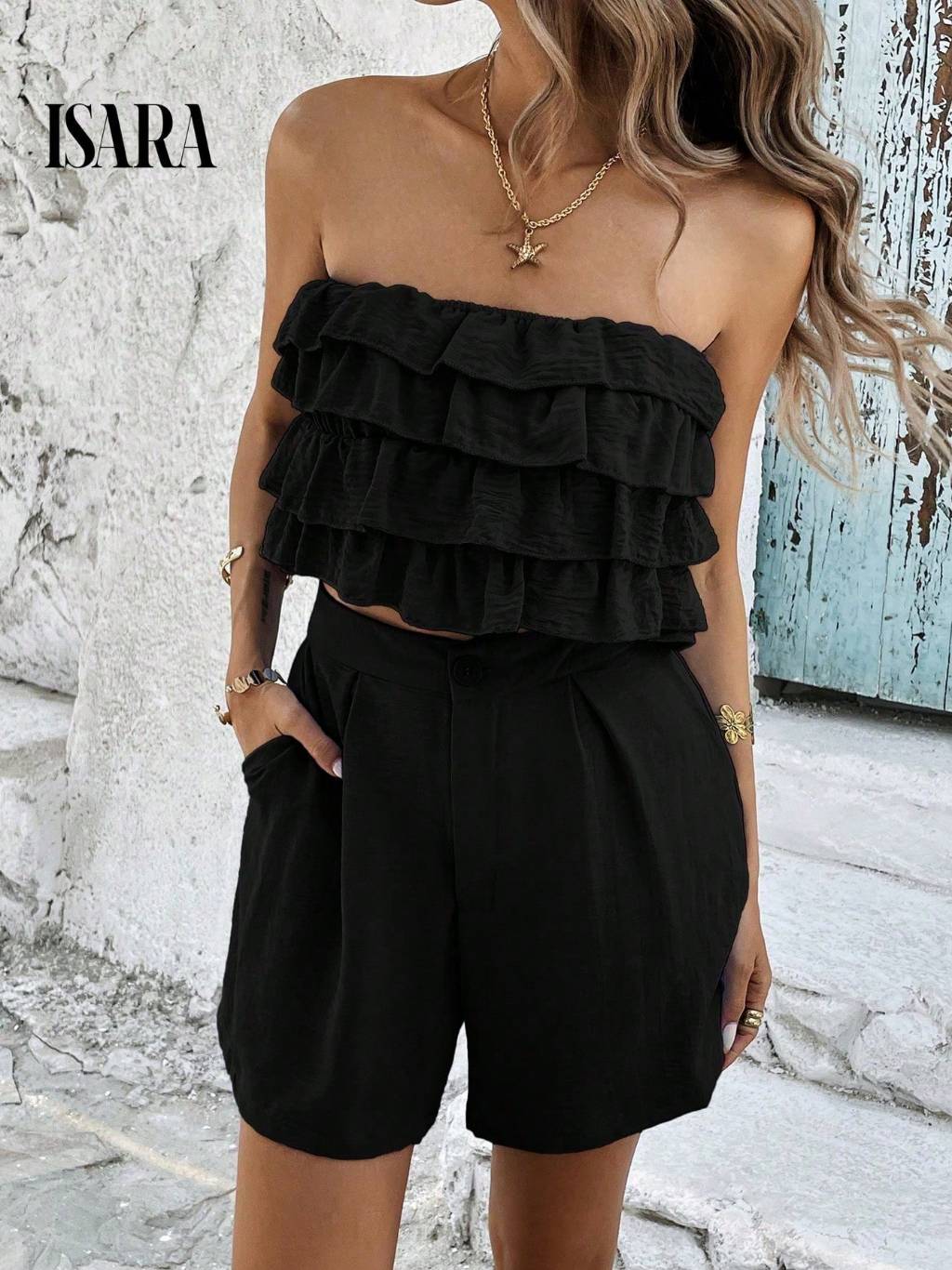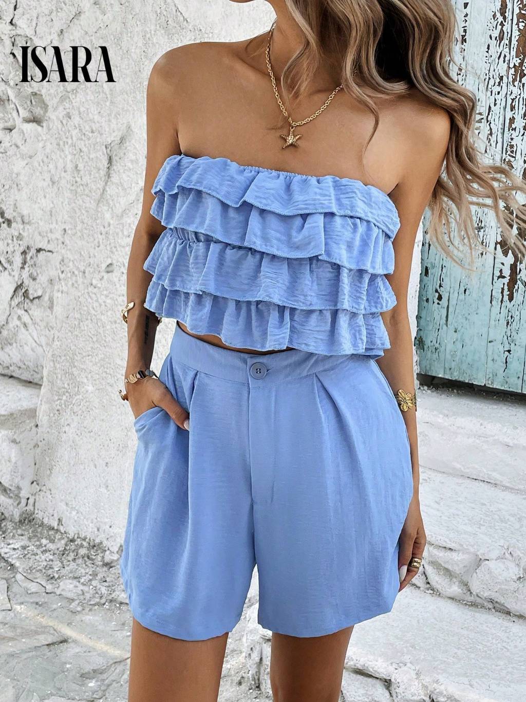SV conjunto feminino verão social Blusa Feminina Blusinha Bata Babado e short