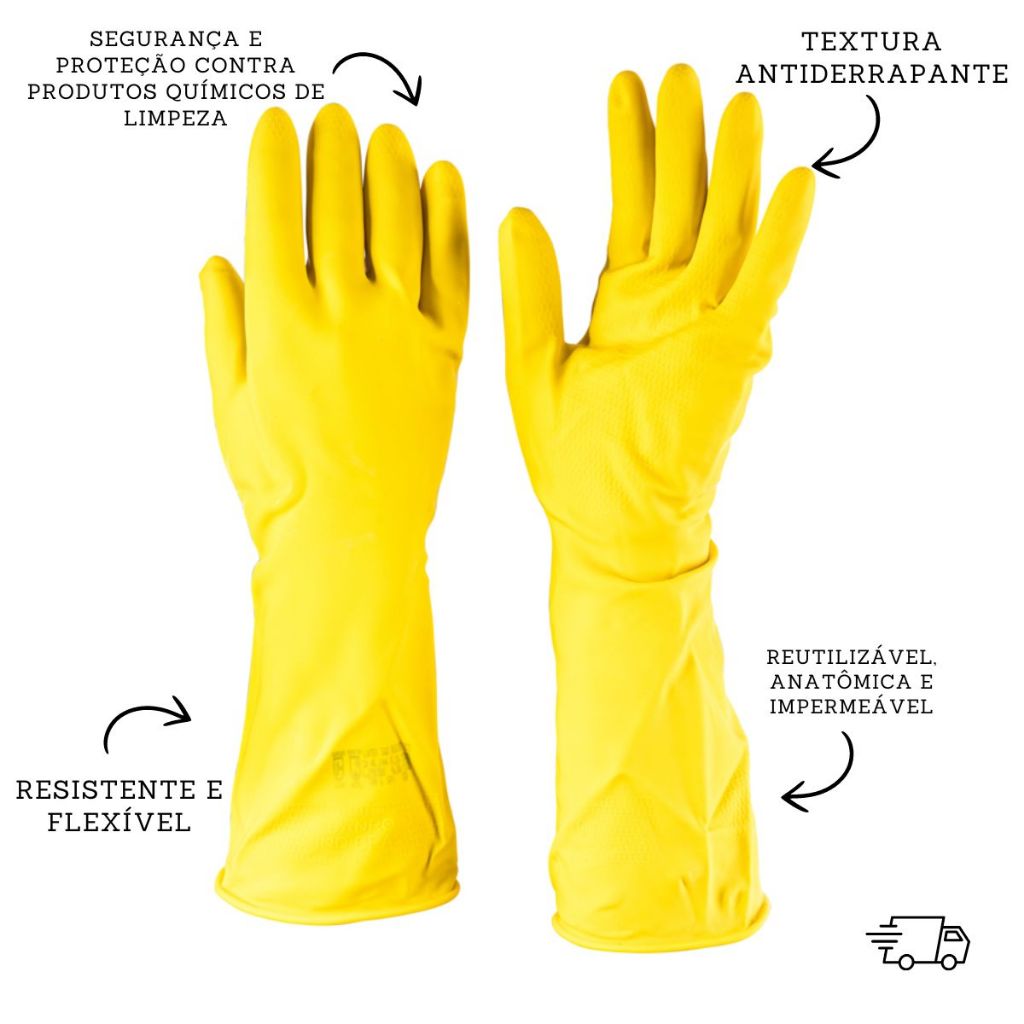 Kit 10 pares Luvas Limpeza Látex Multiuso Amarela