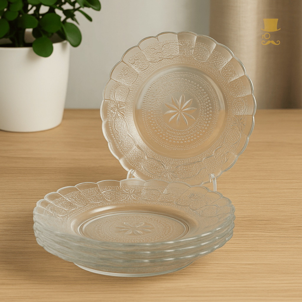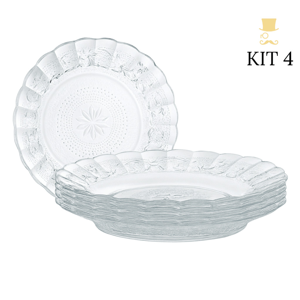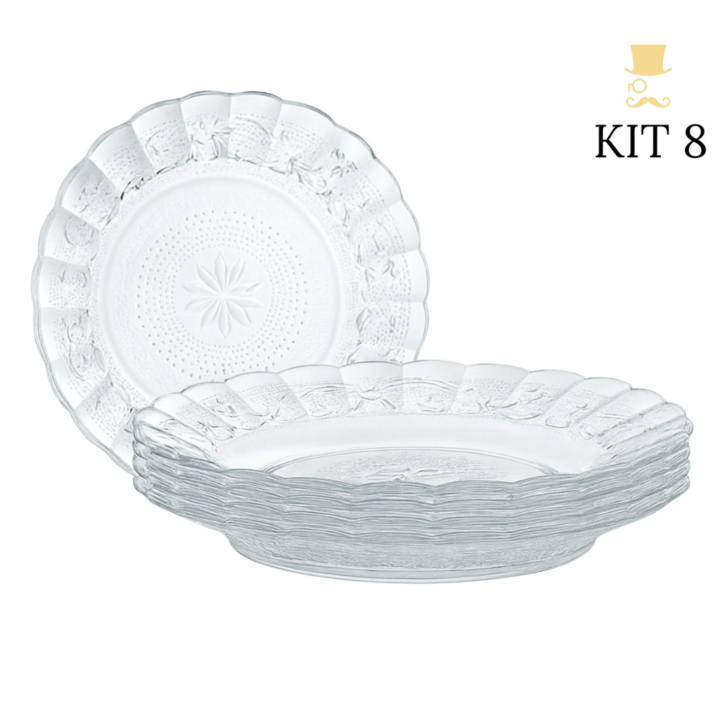 Kit Até 12 Pratos De Vidro Egípcio Fundo Transparente Estrela 22cm Moderno Resistente e Sofisticado