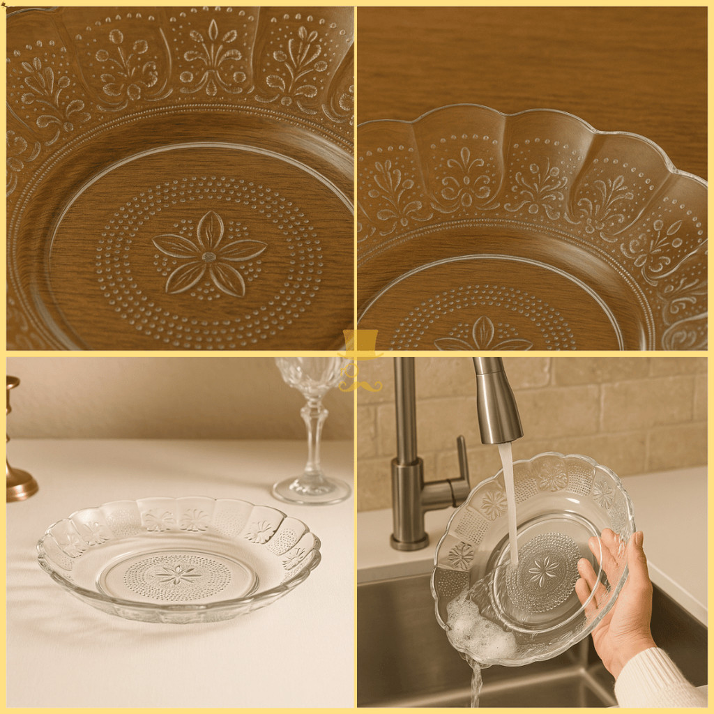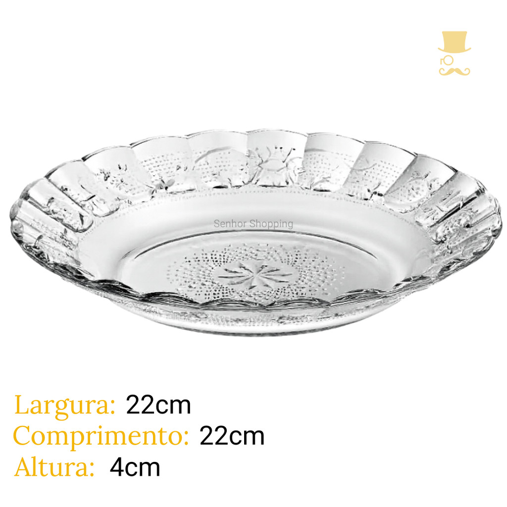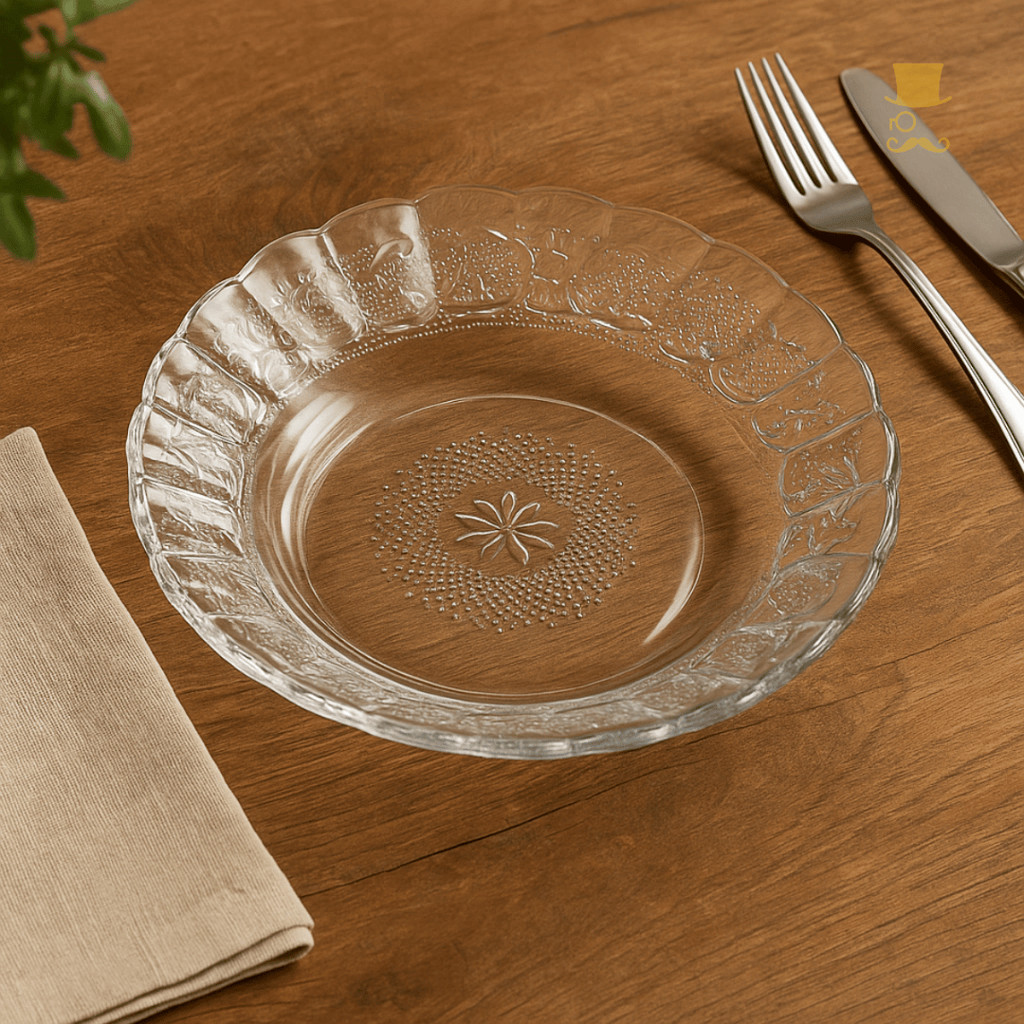 Kit Até 12 Pratos De Vidro Egípcio Fundo Transparente Estrela 22cm Moderno Resistente e Sofisticado