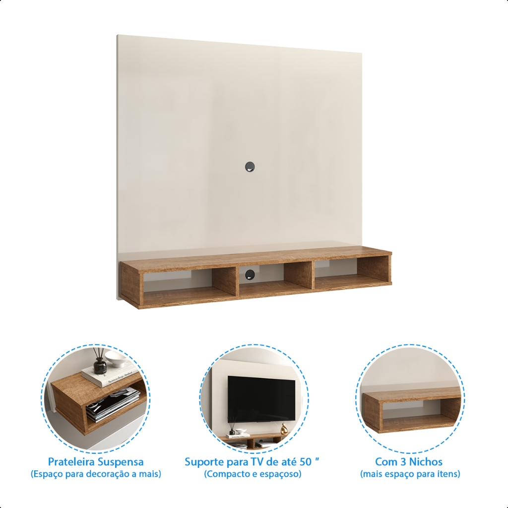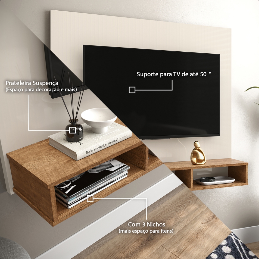 Painel Sol para TV até 50" com Nichos, Prateleiras e Acabamento Elegante
