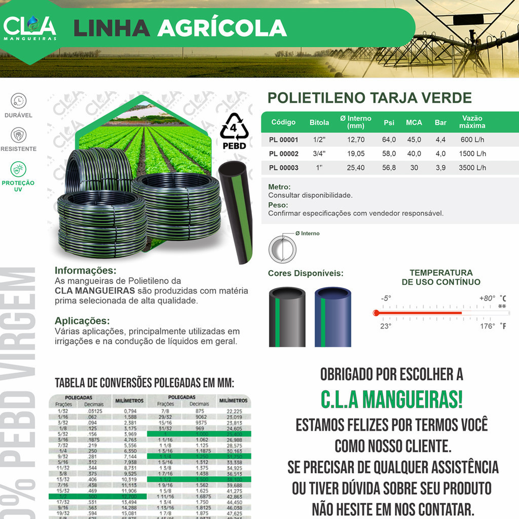 Mangueira Irrigação Gotejamento 1/2 Plástica Rolo Com 100 Metros SEM FUROS Reforçada SELO Verde/Azul