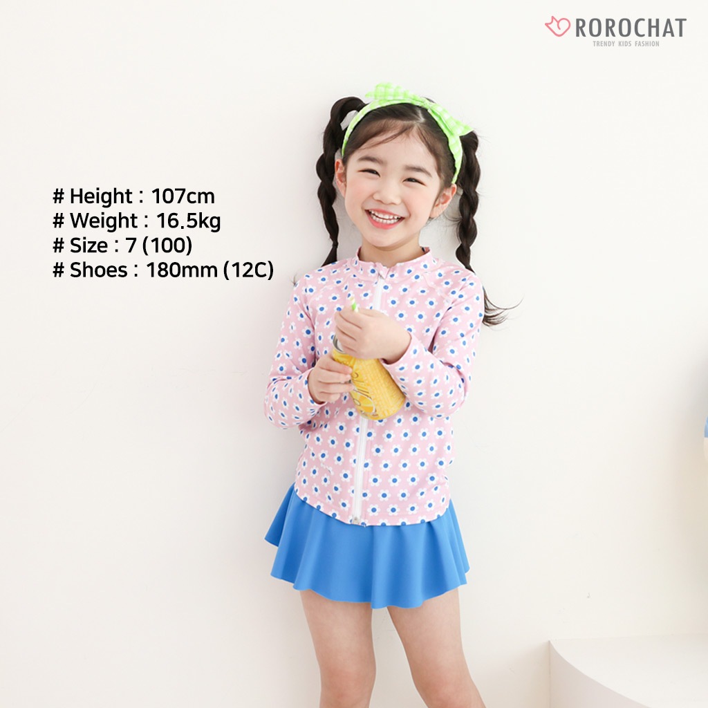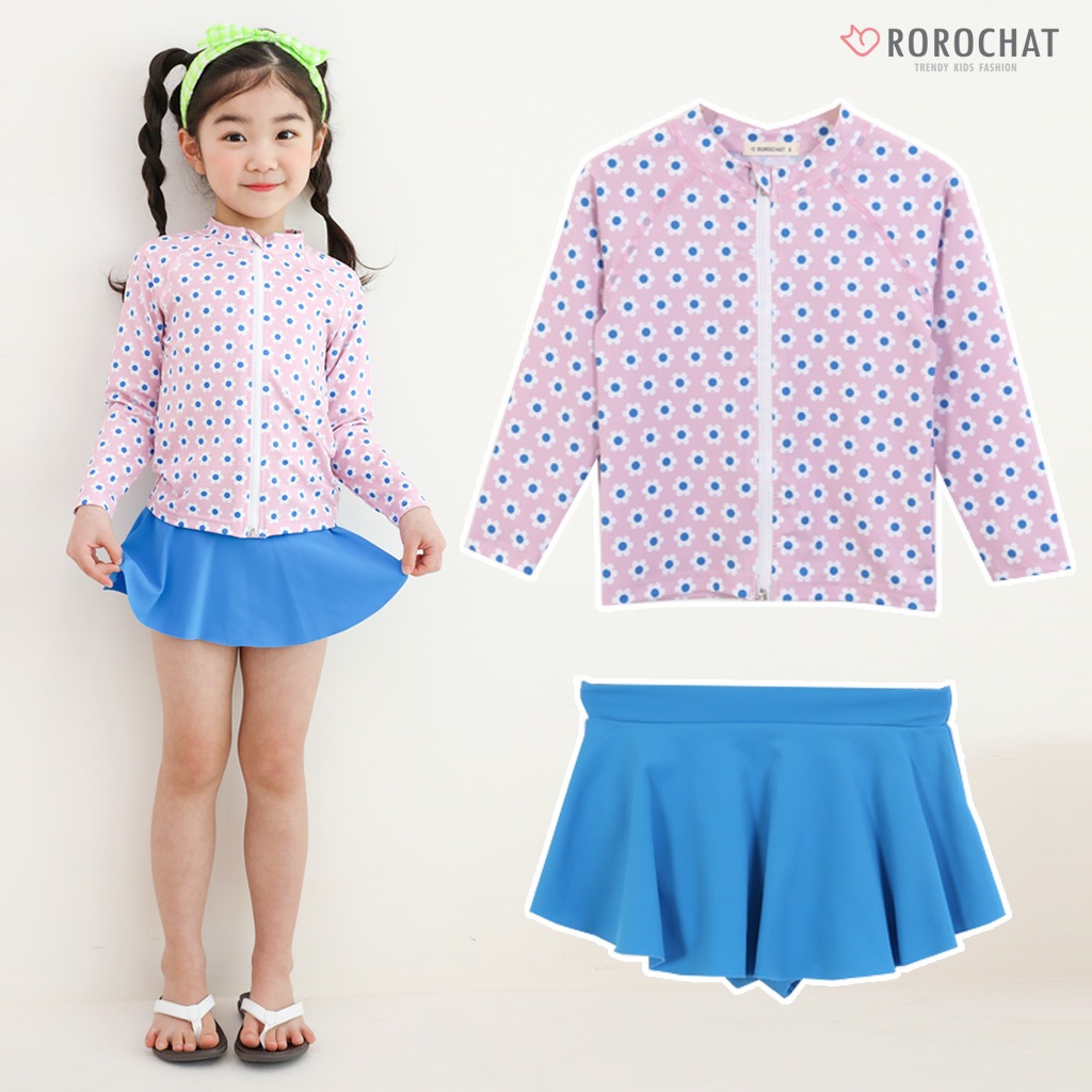 ROROCHAT ❤ Maiô Infantil De Manga Comprida Para Meninas/Roupas Molhadas Infantis/Com Zíper E Estampa De Flores Bebês , Roupa De Praia De Duas Peças